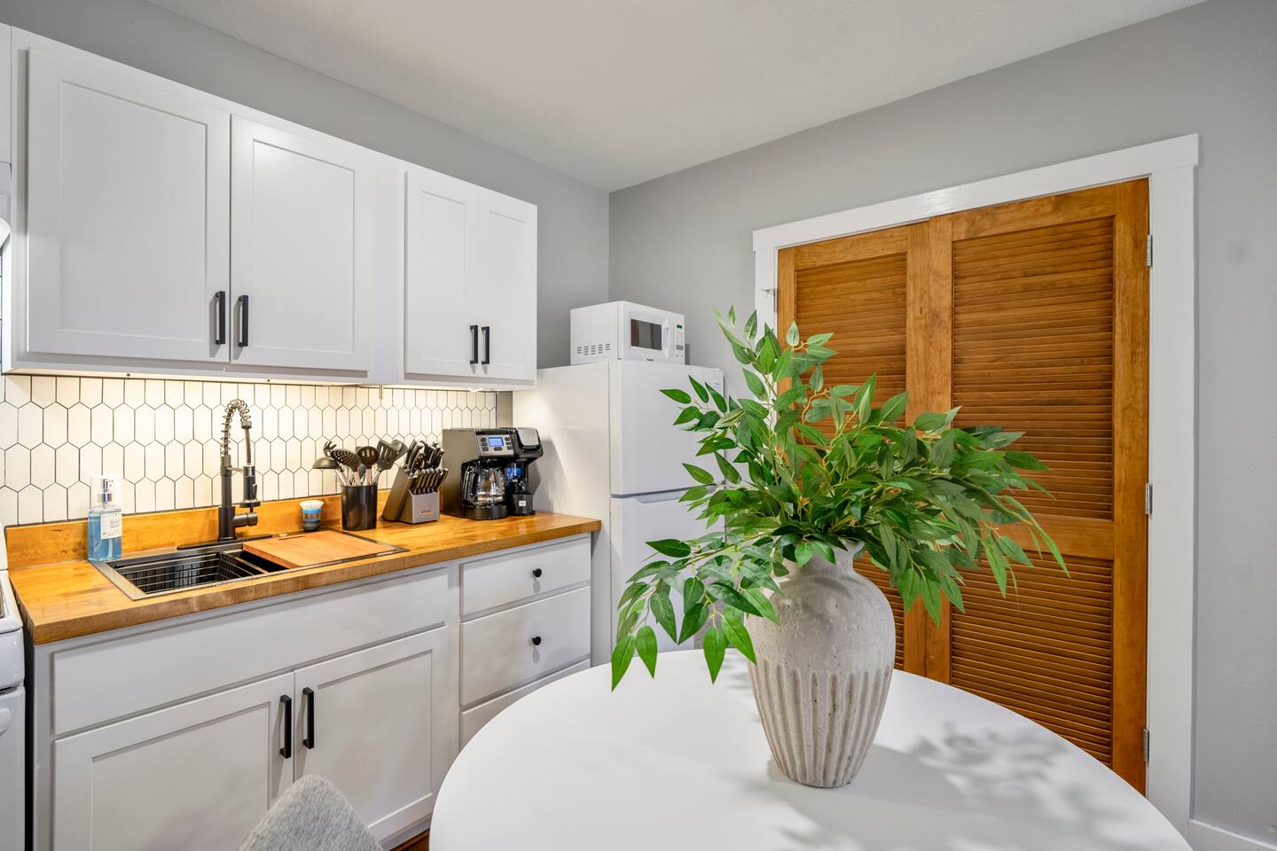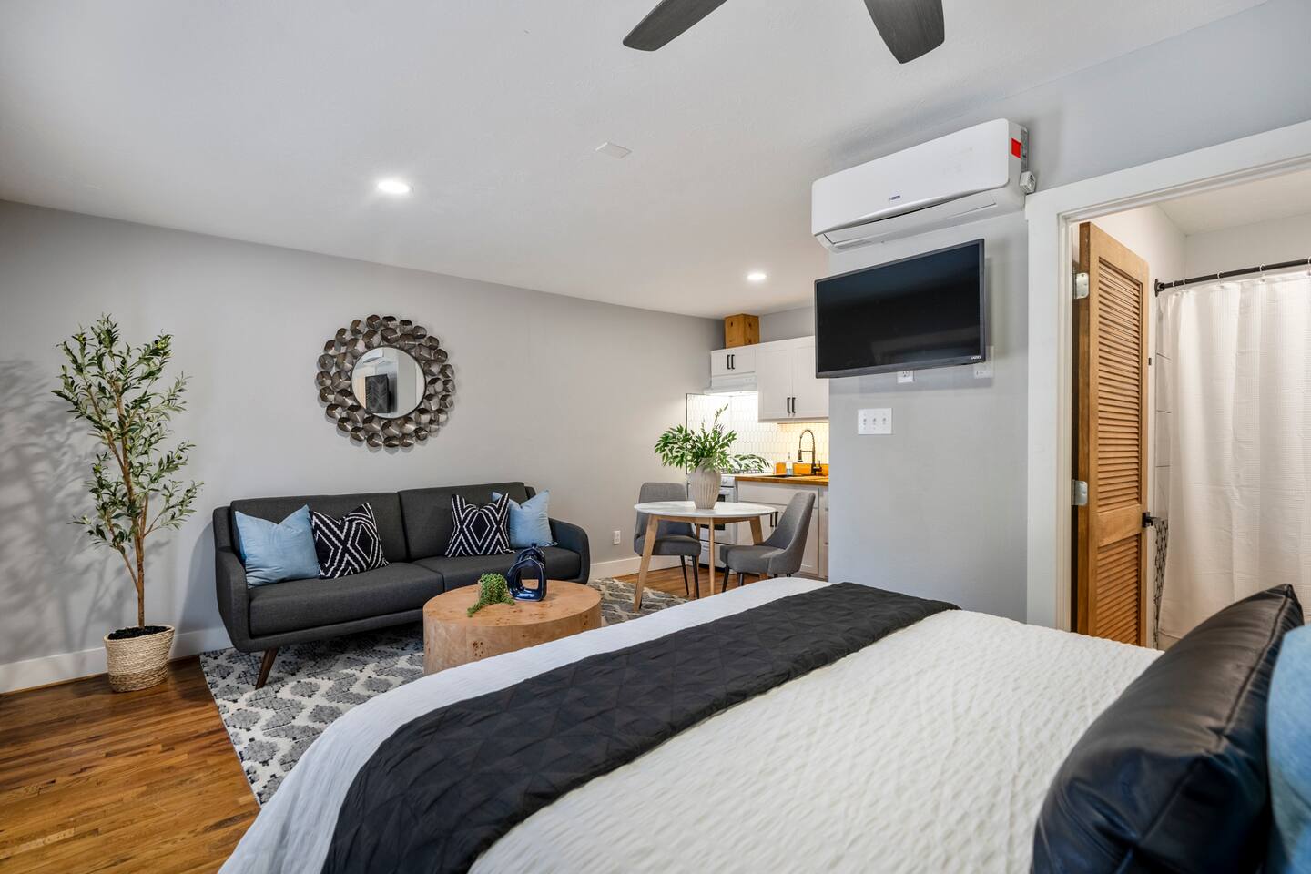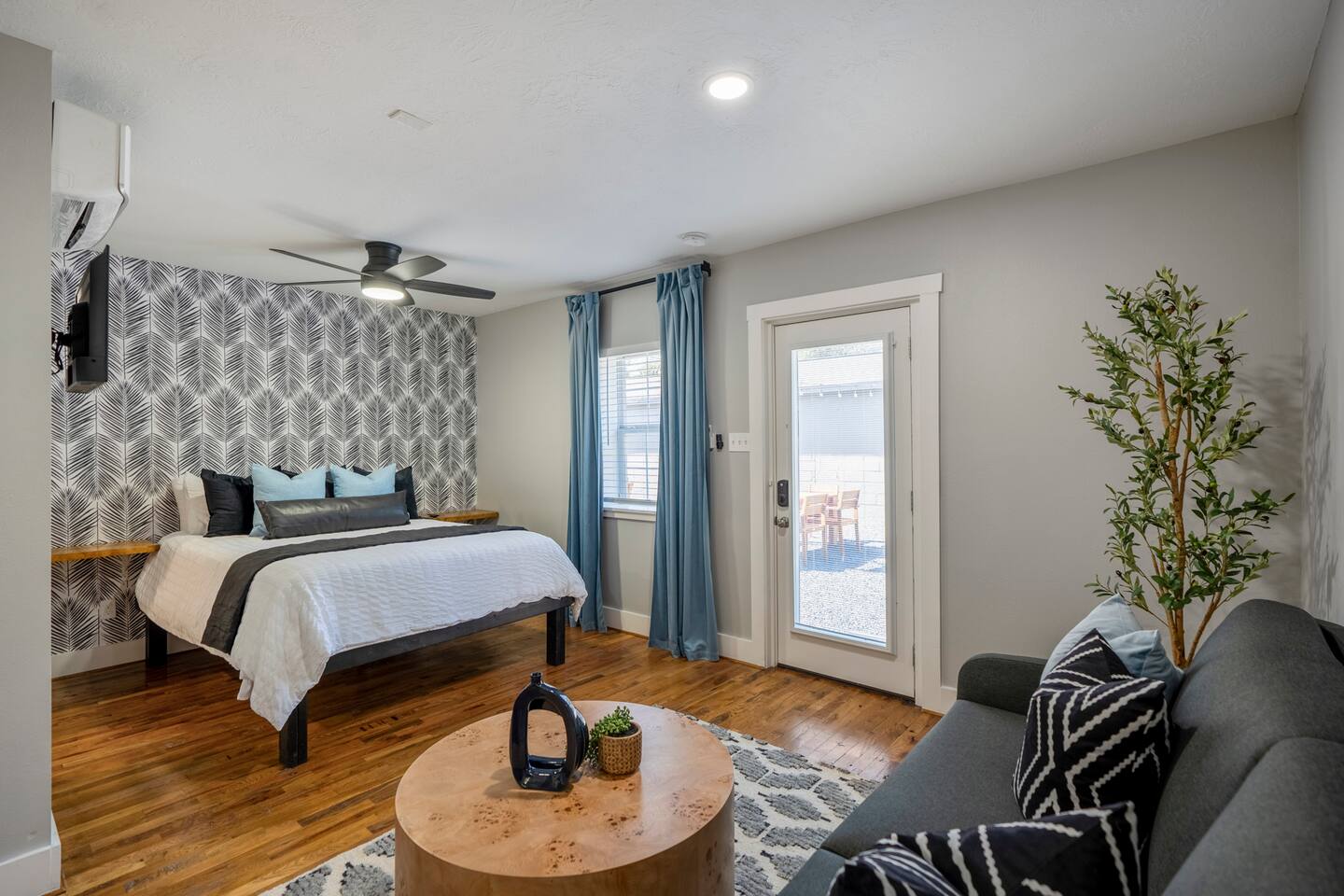 This cozy, fully-equipped studio is located on the lower level and includes 1 comfortable bed, 1 bath, and a modern kitchen perfect for cooking your favorite meals. Relax on the plush couch after a day of exploring Houston or take advantage of the on-site laundry room for added convenience. The studio offers a warm, inviting space with everything you need for a comfortable stay. Free on-site parking is available. As a note, this is ONE unit in a collection of unique spaces at our property. Need more room? We can accommodate multiple guests across our other units!