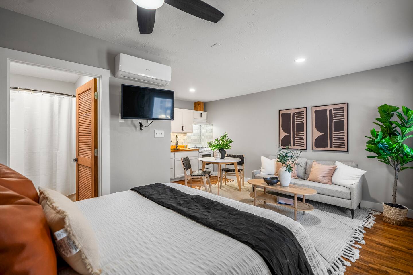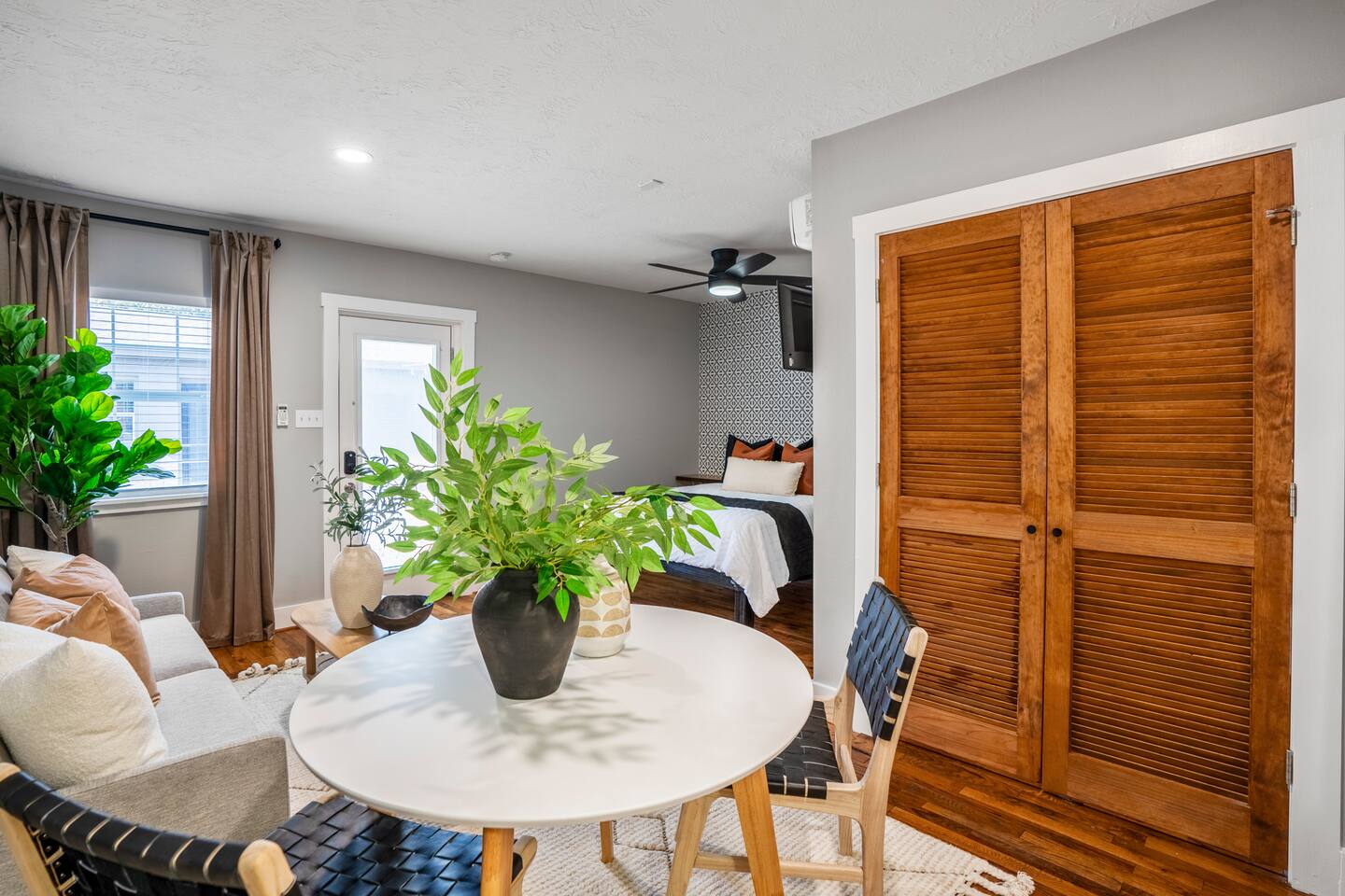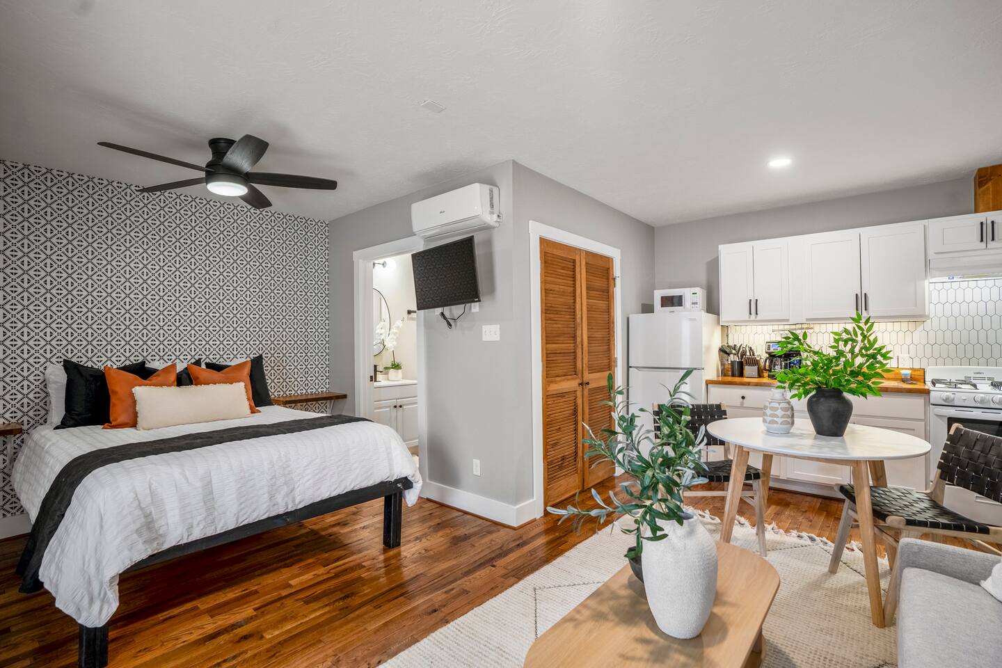 This cozy, fully-equipped studio is located on the lower level and includes 1 comfortable bed, 1 bath, and a modern kitchen perfect for cooking your favorite meals. Relax on the plush couch after a day of exploring Houston or take advantage of the on-site laundry room for added convenience. The studio offers a warm, inviting space with everything you need for a comfortable stay. Free on-site parking is available. As a note, this is ONE unit in a collection of unique spaces at our property. Need more room? We can accommodate multiple guests across our other units!