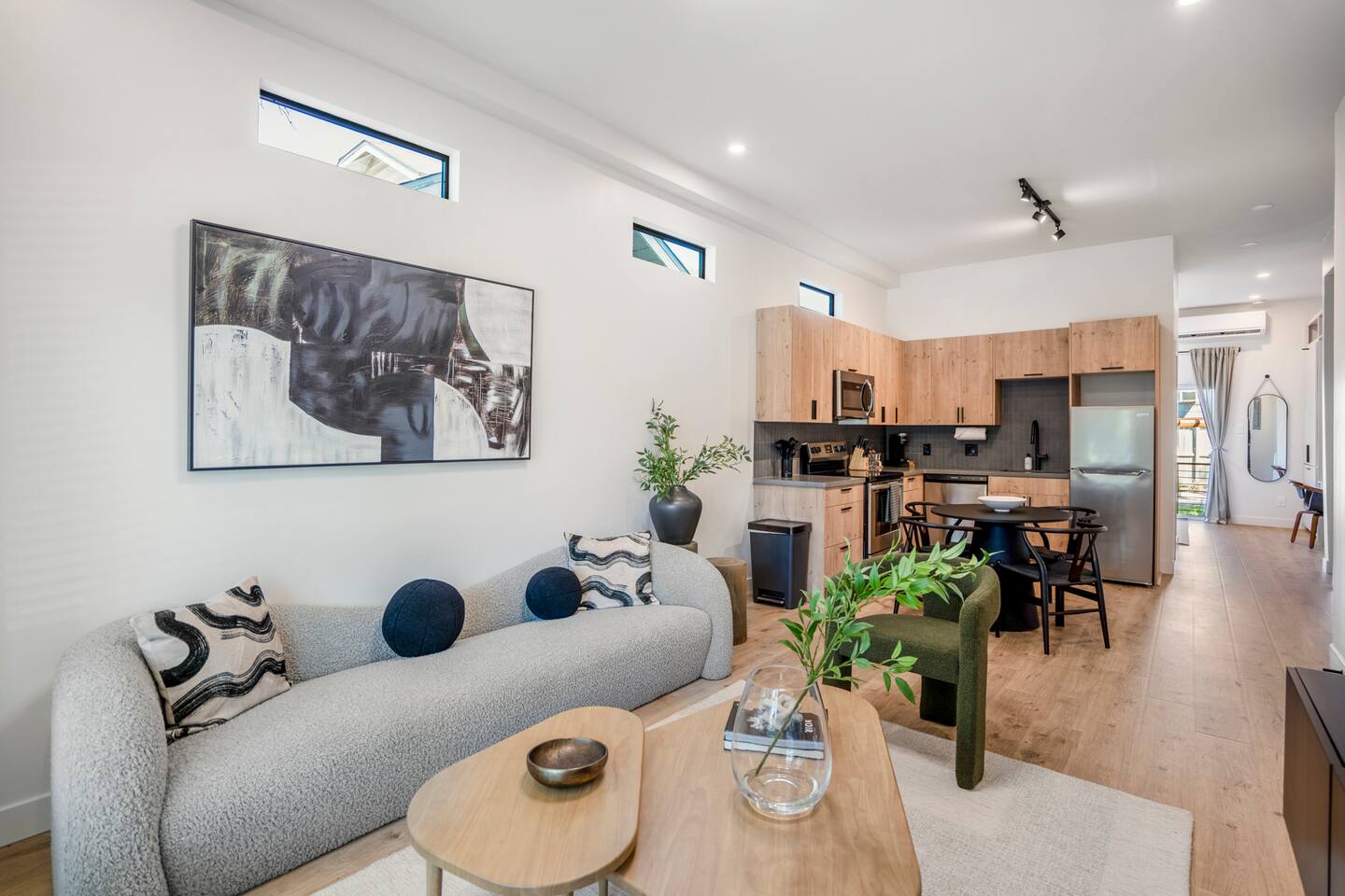 Inspire lofts is a 750 sq ft studio with open living all throughout. This unit comes with its own private balcony that opens to a gorgeous backyard. This space everything you would expect from a top quality hotel including: Superfast wifi Tall ceilings Abundant natural light Luxurious bathroom Private balcony Gated backyard We offer vacuum, broom, mop and other cleaning supplies for guests looking to stay an extended period of time. This space is perfect for the solo traveler and couples or anyone looking for a private getaway whether for business or leisure.