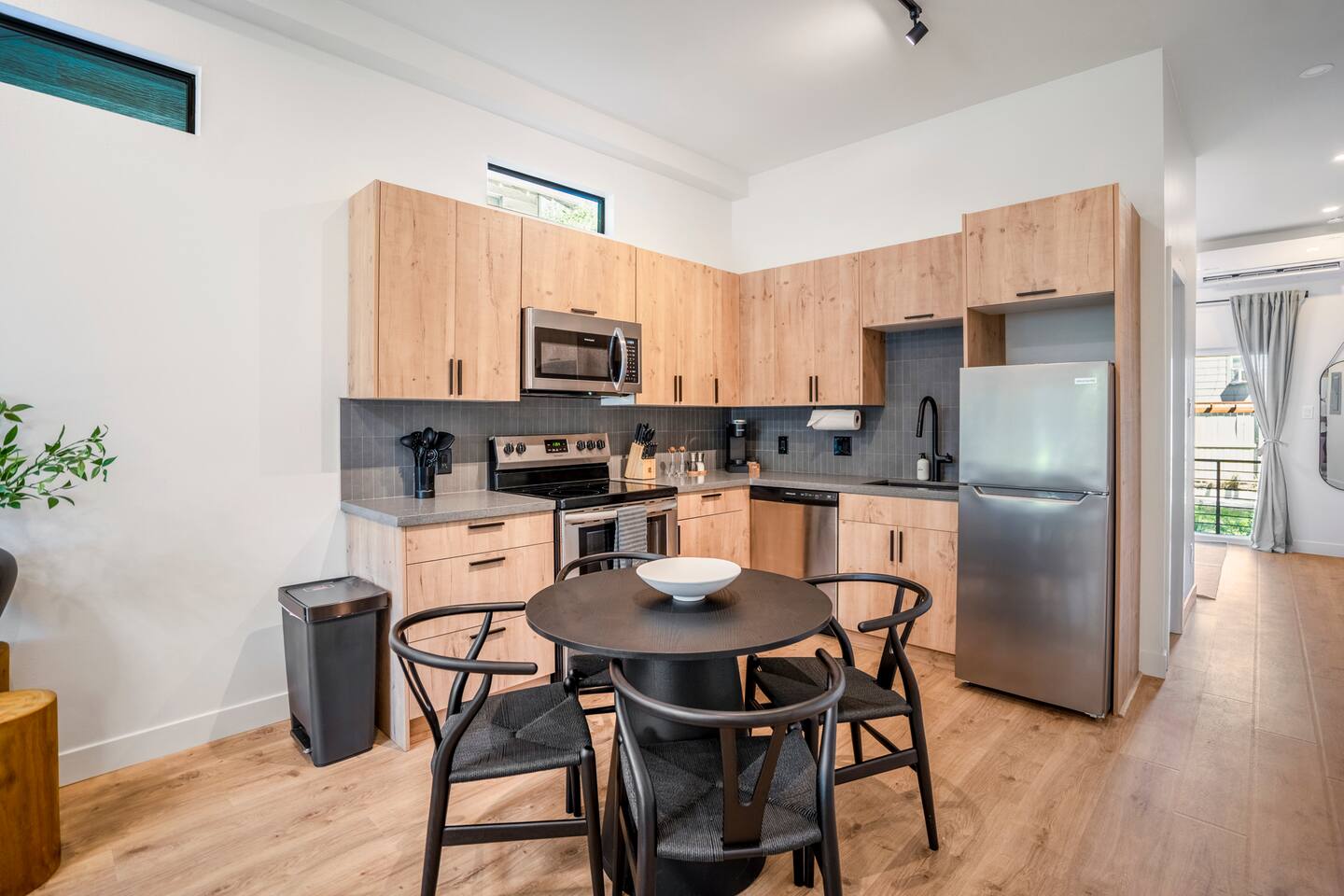 Welcome to your stylish studio retreat! Enjoy modern design and top-tier amenities, including a fully equipped kitchen with Keurig coffee machine, cookware, and high-end appliances. Stay connected with high-speed WiFi and make use of the smart fridge. Relax with the Roku TVs in the living area and bedroom, perfect for enjoying your favorite shows or movies in comfort. Perfect for work or leisure, this studio offers the ideal blend of comfort, style, and convenience. Book your stay today!