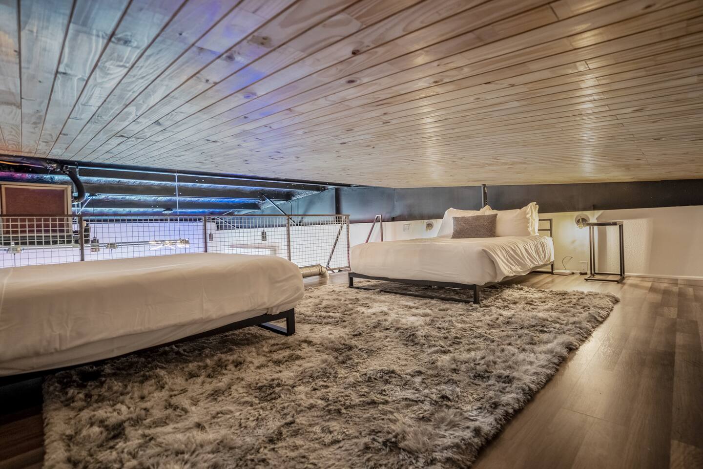 Please note access to the second floor loft requires climbing a ship ladder (see photos). We highly recommend using both hands to climb to access the two queen beds at the top. The loft area at the top floor is low, please be careful at all times.