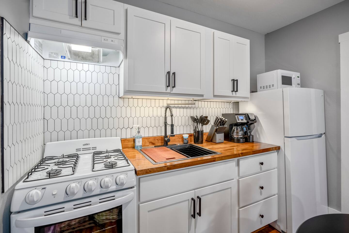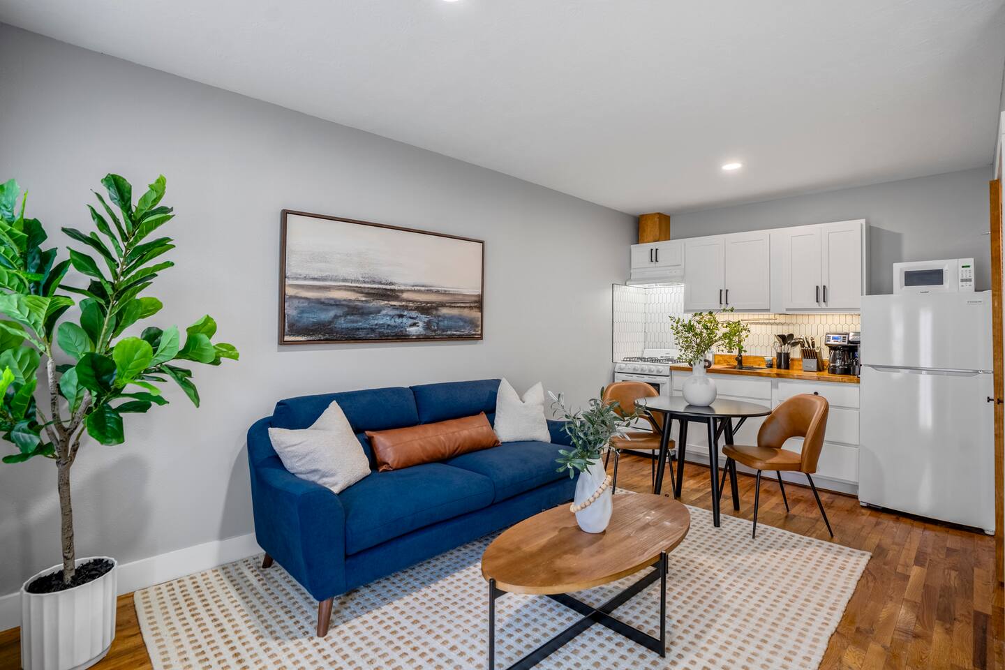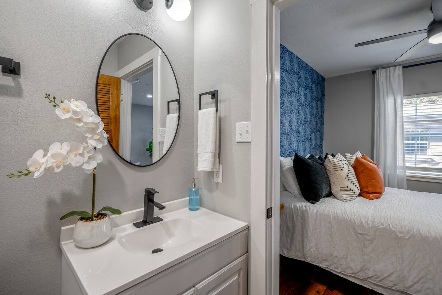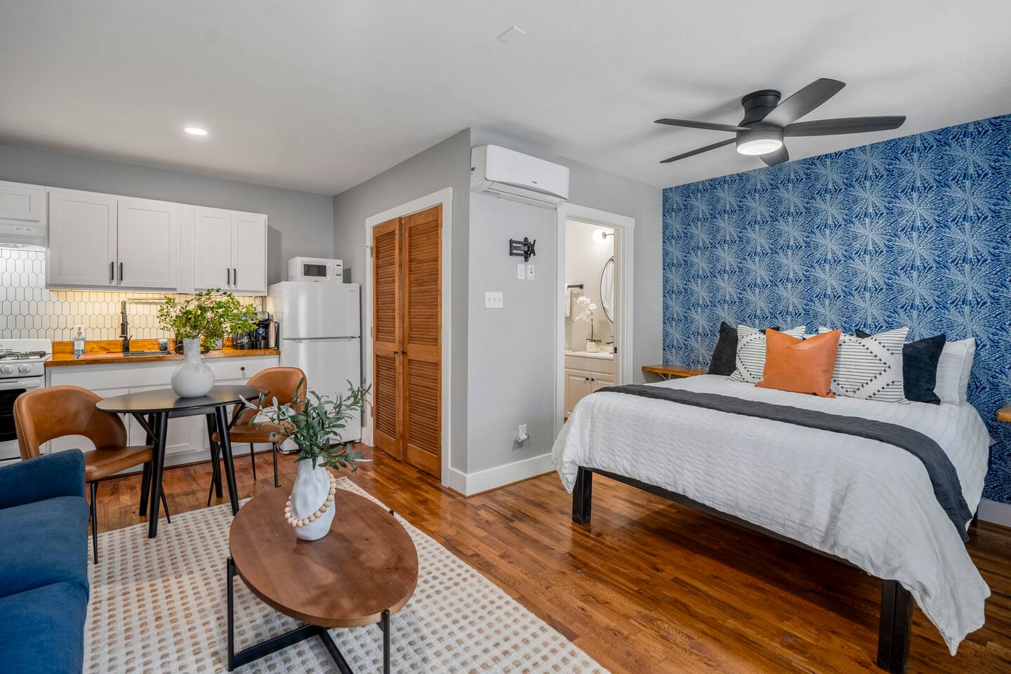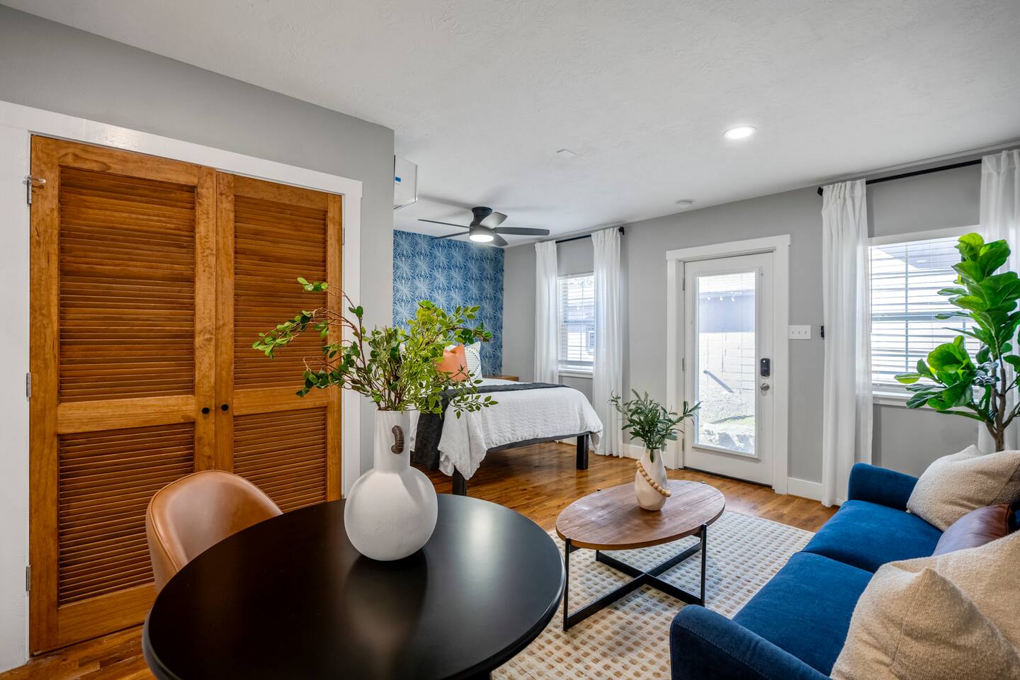 This cozy, fully-equipped studio is located on the lower level and includes 1 comfortable bed, 1 bath, and a modern kitchen perfect for cooking your favorite meals. Relax on the plush couch after a day of exploring Houston or take advantage of the on-site laundry room for added convenience. The studio offers a warm, inviting space with everything you need for a comfortable stay. Free on-site parking is available. As a note, this is ONE unit in a collection of unique spaces at our property. Need more room? We can accommodate multiple guests across our other units!