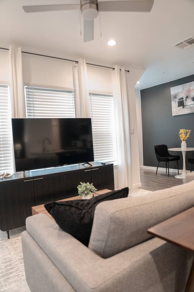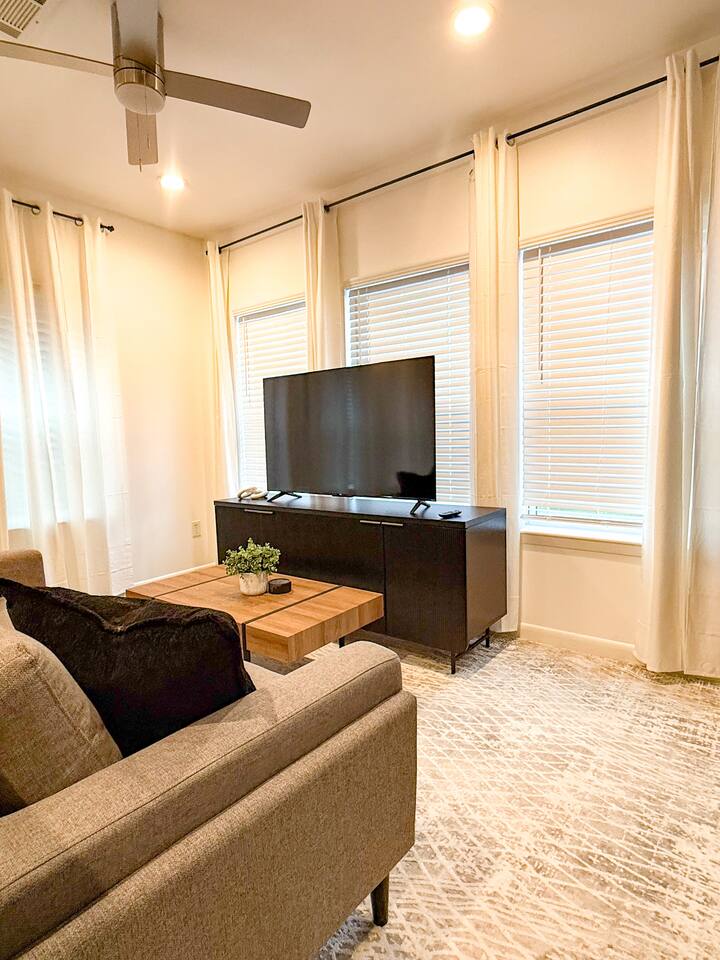 Relax in style at this chic, modern space with open living, dining, and a fully equipped kitchen. Nestled in a quiet, vibrant neighborhood, you're minutes from Houston’s top attractions, eats, and parks—perfect for solo travelers or couples. This memorable stay is anything but ordinary. "Adventure awaits—message us for exclusive discounts, hidden gems & exciting extras!"