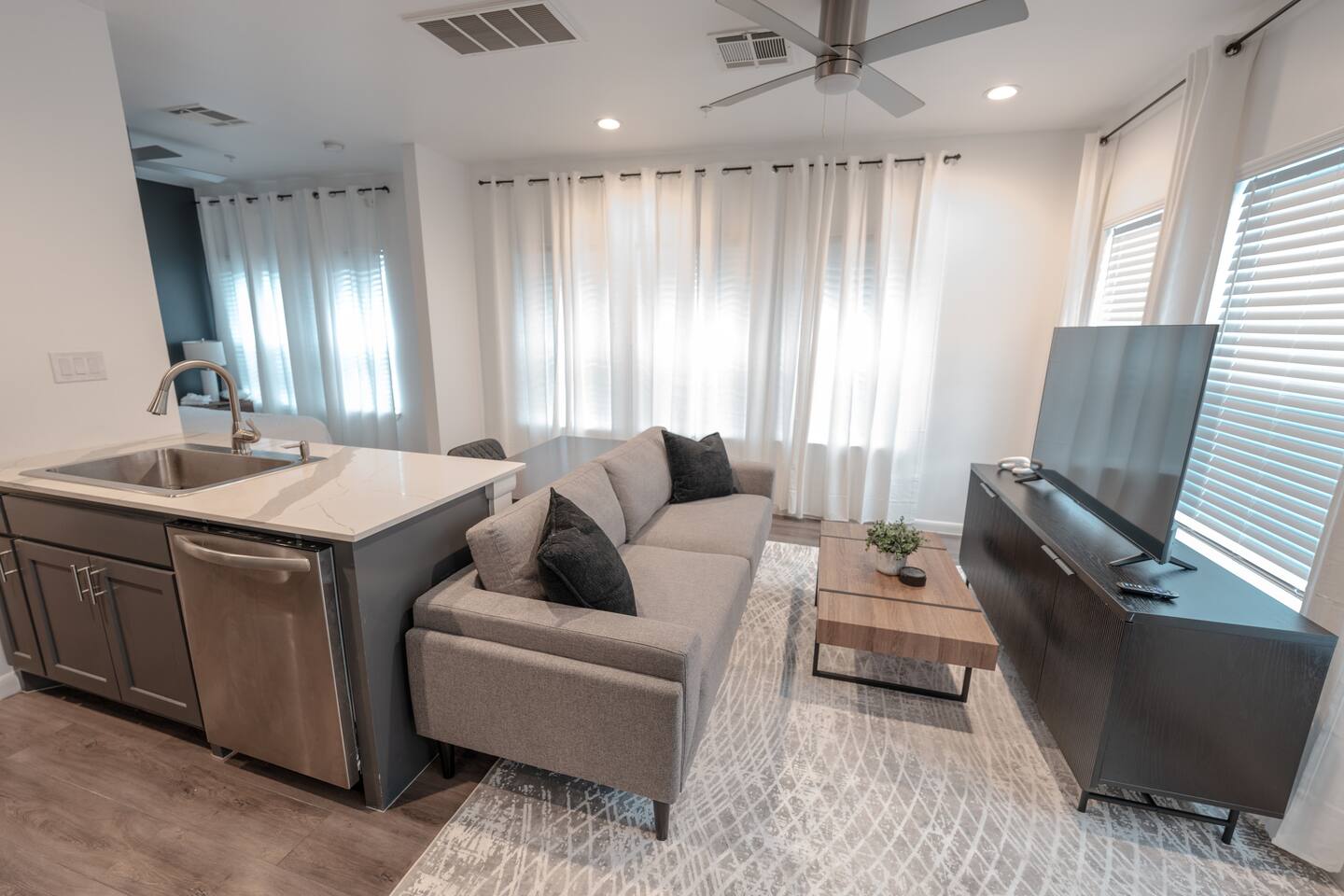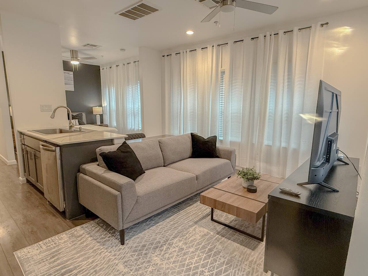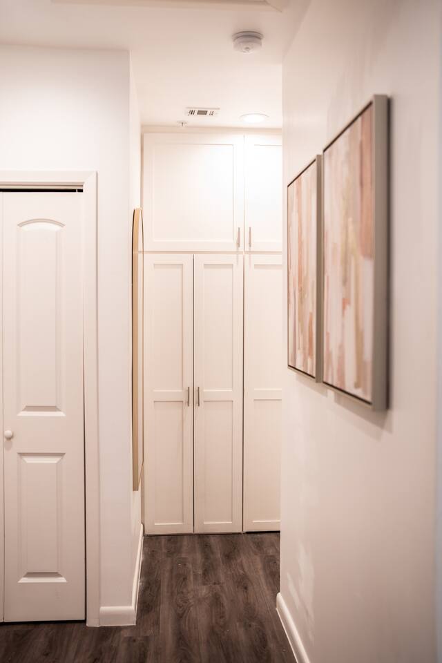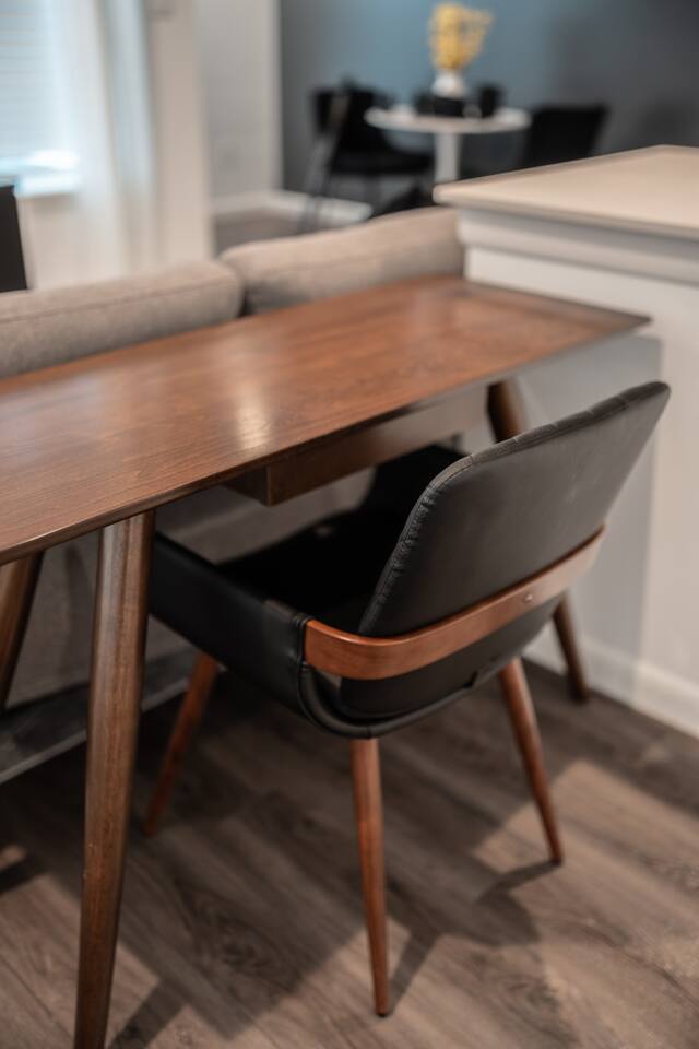 This thoughtfully designed studio offers a welcoming, open-concept layout that blends comfort and style. The cozy living area is perfect for relaxing, while the dining space comfortably seats two. The modern kitchen is fully equipped for home-cooked meals, and the bedroom features a plush bed for restful nights. The bathroom is clean and well-appointed with all essentials provided. The studio’s bright, airy atmosphere ensures a relaxing stay in Houston.