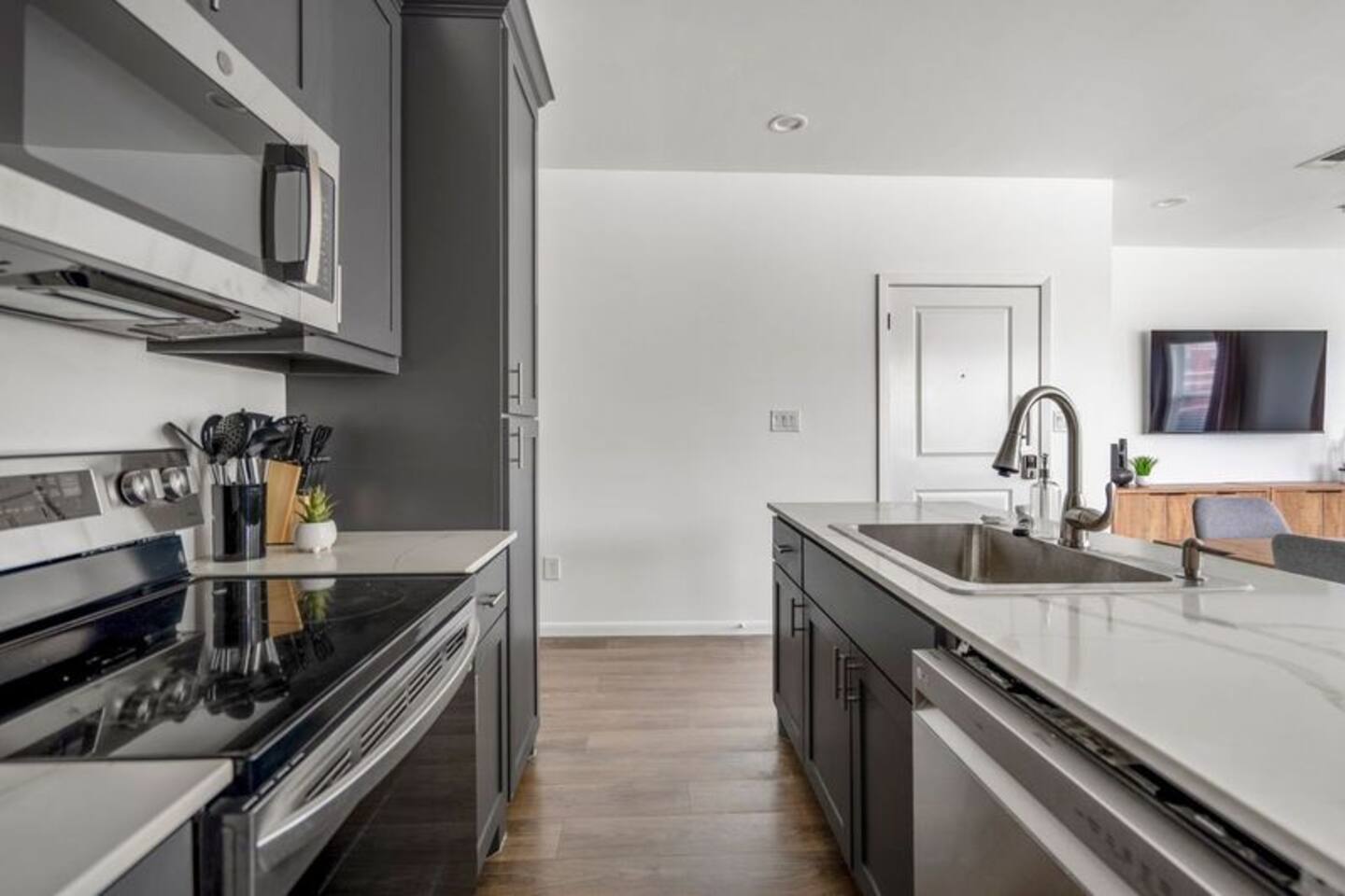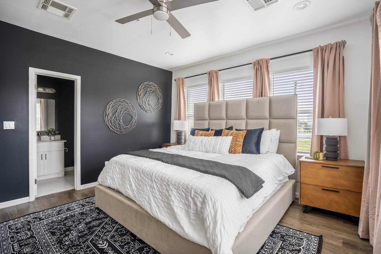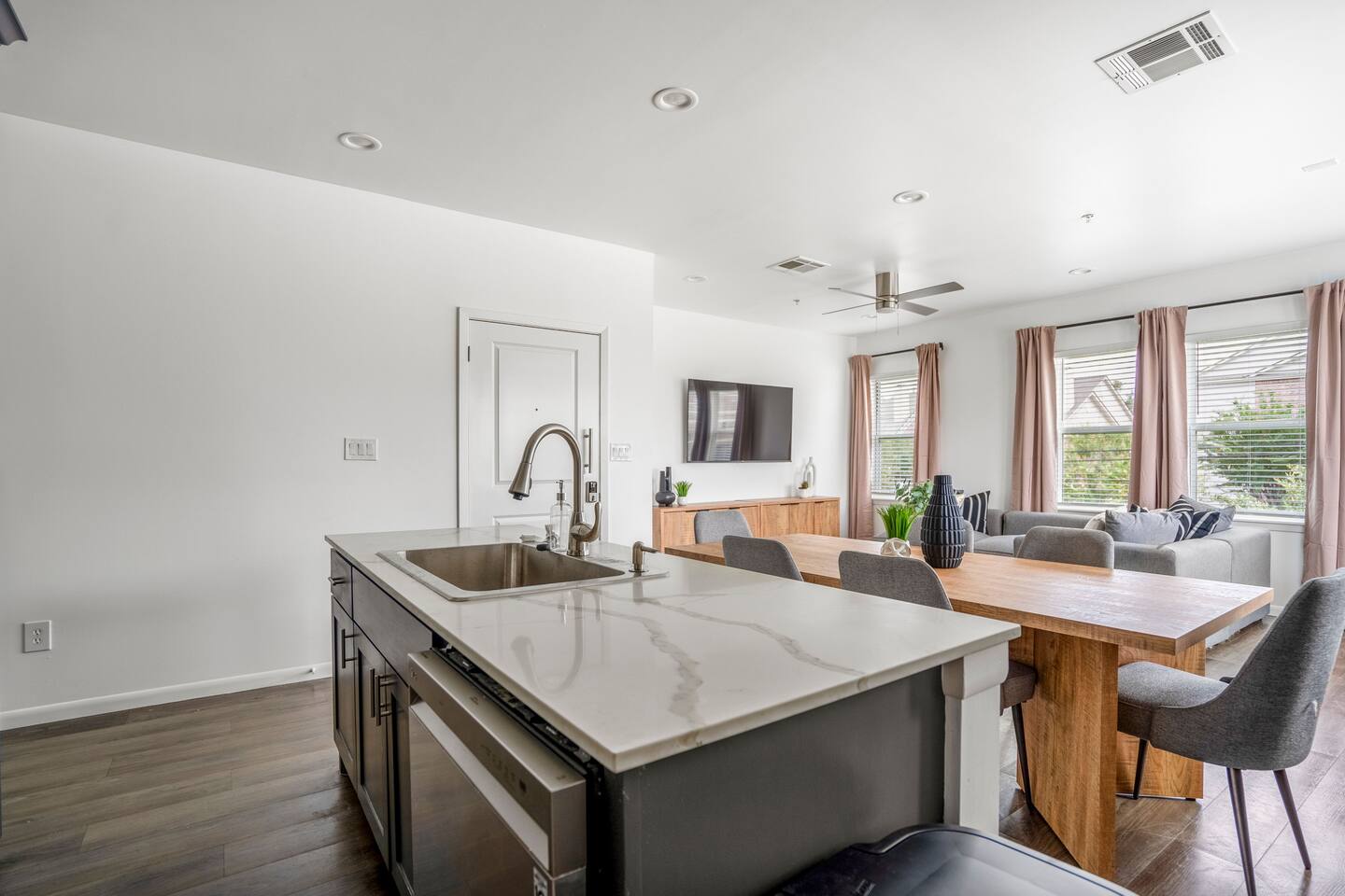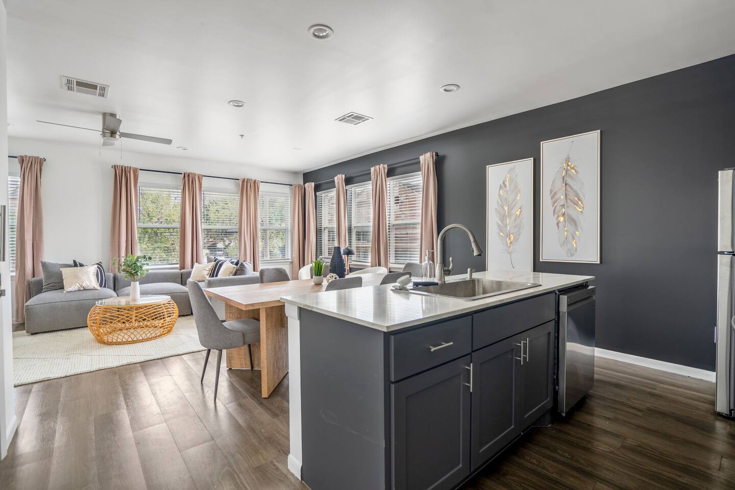 This thoughtfully designed apartment offers a welcoming, open-concept layout that blends comfort and style. The cozy living area is perfect for relaxing, while the dining space comfortably seats two. The modern kitchen is fully equipped for home-cooked meals, and the bedrooms features plush beds for restful nights. The bathroom is clean and well-appointed with all essentials provided. The apartment’s bright, airy atmosphere ensures a relaxing stay in Houston.