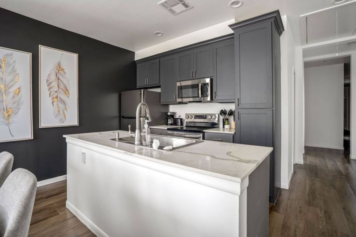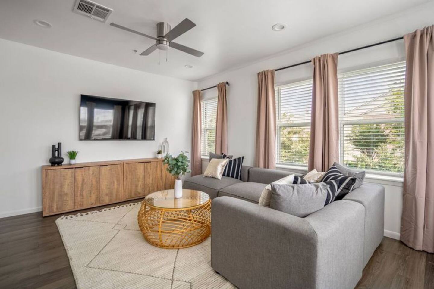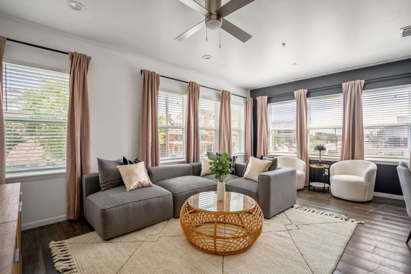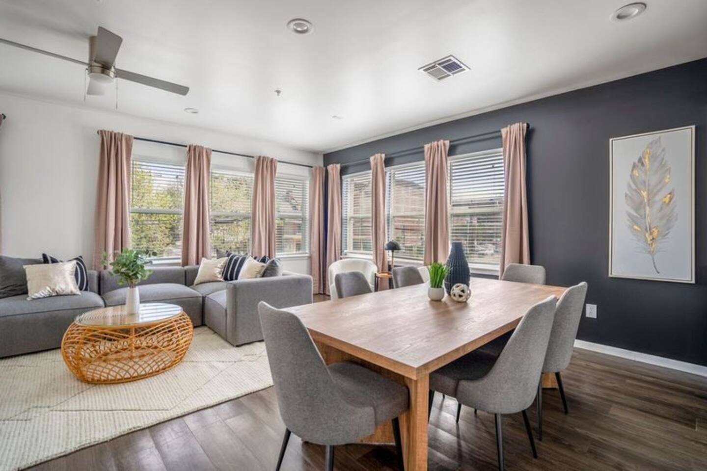 This thoughtfully designed apartment offers a welcoming, open-concept layout that blends comfort and style. The cozy living area is perfect for relaxing, while the dining space comfortably seats two. The modern kitchen is fully equipped for home-cooked meals, and the bedrooms features plush beds for restful nights. The bathroom is clean and well-appointed with all essentials provided. The apartment’s bright, airy atmosphere ensures a relaxing stay in Houston.