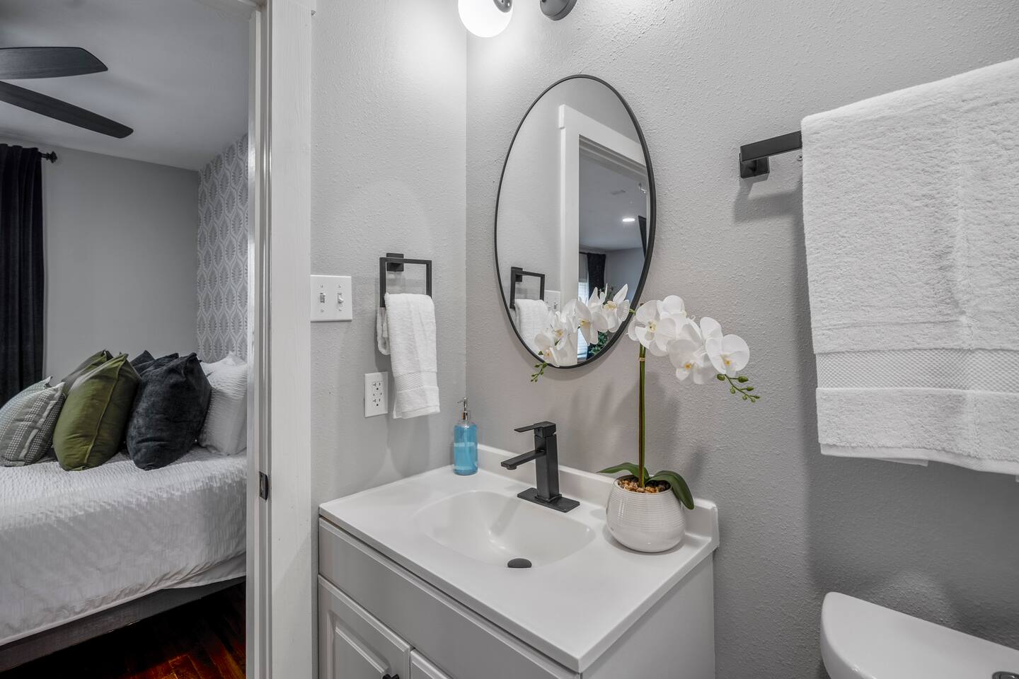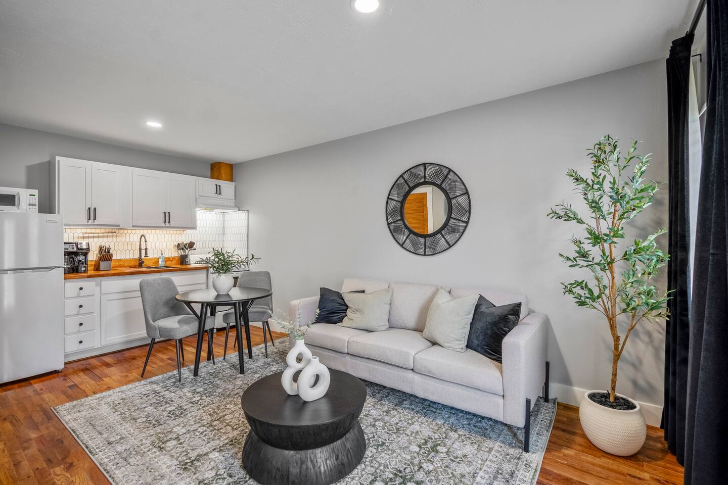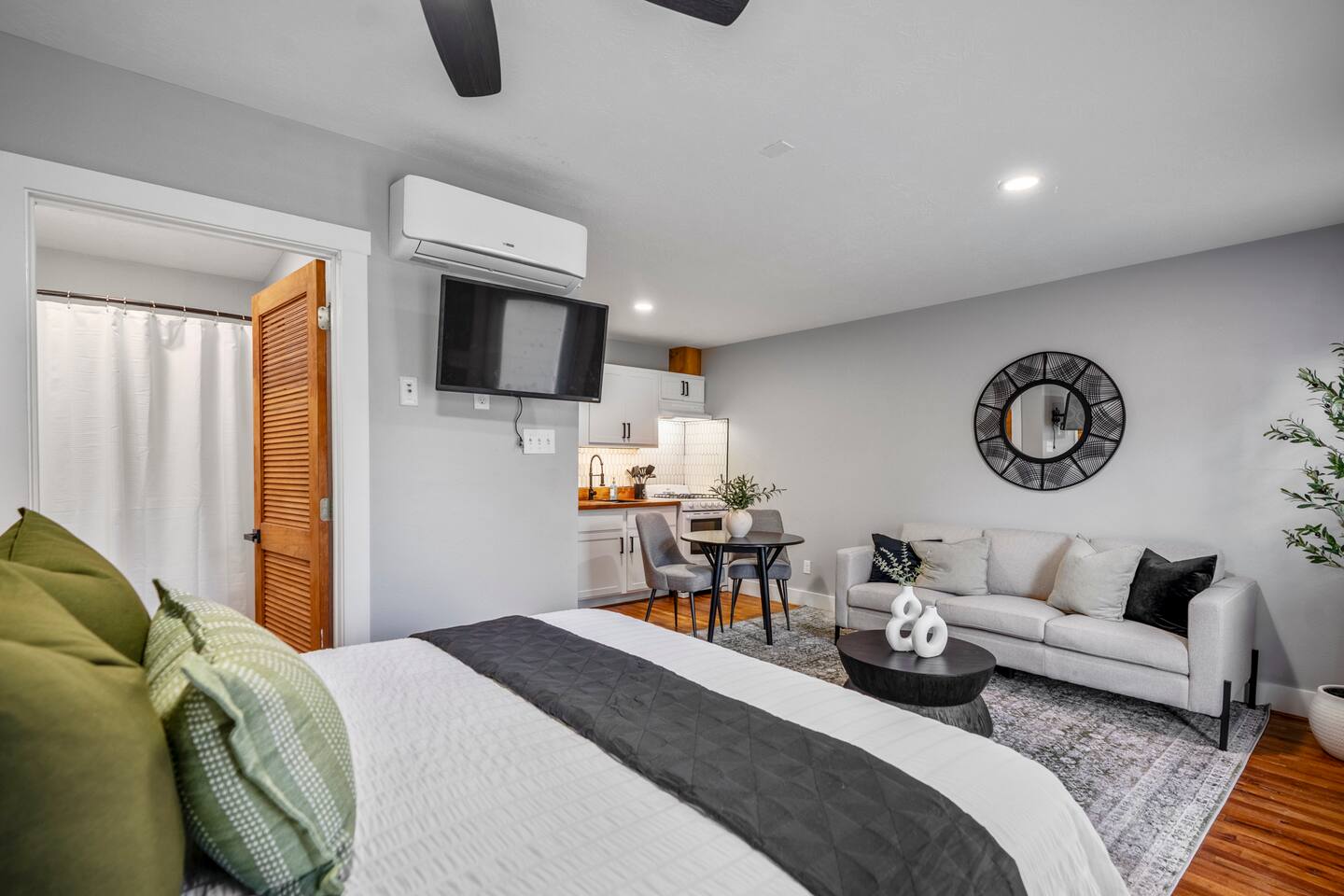 This cozy, fully-equipped studio is located on the lower level and includes 1 comfortable bed, 1 bath, and a modern kitchen perfect for cooking your favorite meals. Relax on the plush couch after a day of exploring Houston or take advantage of the on-site laundry room for added convenience. The studio offers a warm, inviting space with everything you need for a comfortable stay. Free on-site parking is available. As a note, this is ONE unit in a collection of unique spaces at our property. Need more room? We can accommodate multiple guests across our other units!