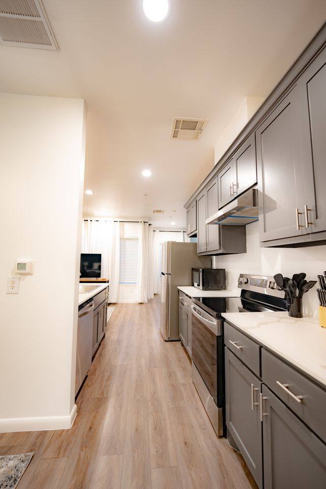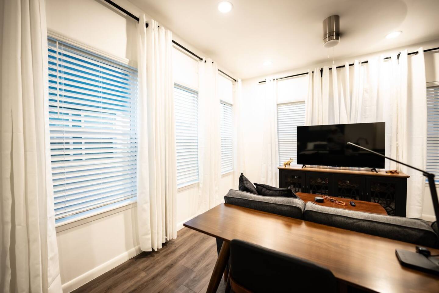 This well-appointed studio features an open layout that balances comfort and modern style. Unwind in the cozy seating area or enjoy a meal for two at the dining table. The sleek kitchen comes stocked with the essentials you need for cooking, and the sleeping area offers a soft, comfortable bed for a great night’s rest. The bathroom is tidy and equipped with basic necessities. With its light, airy feel, this studio provides an easy, relaxing home base in Houston.