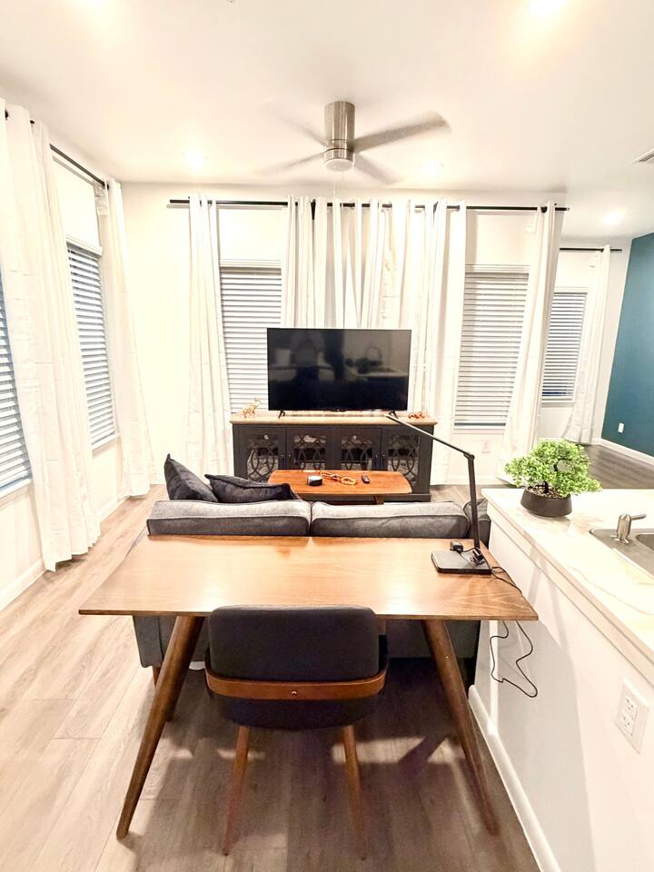 Comfy studio in the heart of Houston, just minutes from the Texas Medical Cntr, Museum District, and Downtown. Enjoy your own private parking spot, fast WiFi, smart TV, and a fully equipped kitchen for easy meals. Relax in a cozy queen bed with fresh linens and hotel-style touches. Secure building, self check-in, and easy access to major hospitals, restaurants, and freeways, perfect for medical professionals, patients, and city visitors.