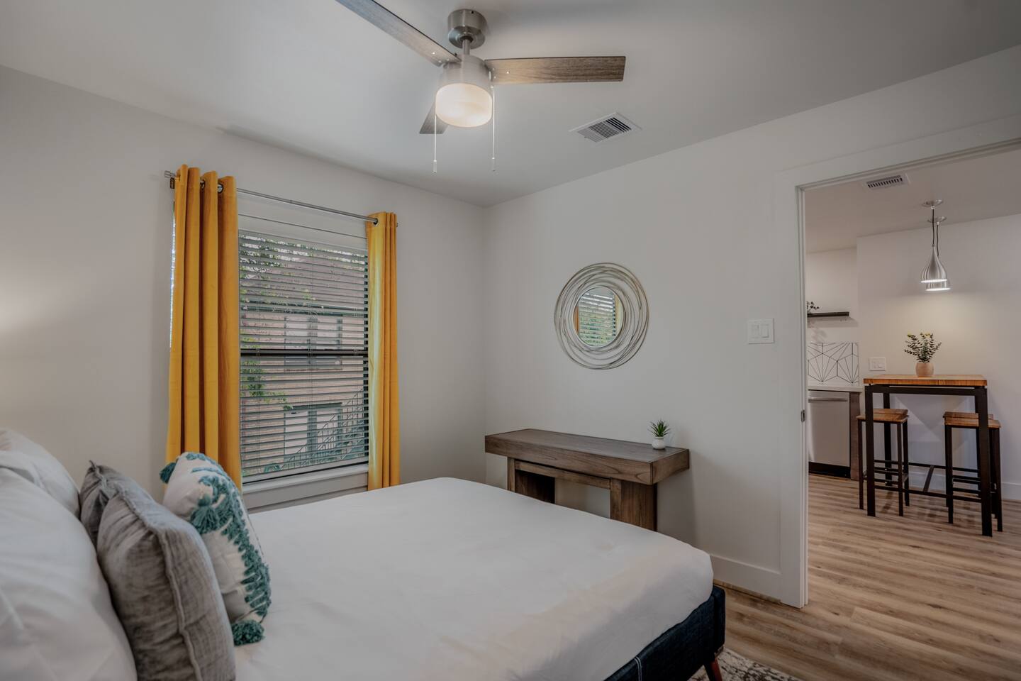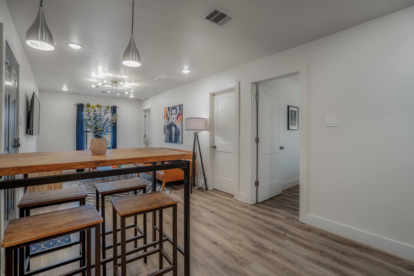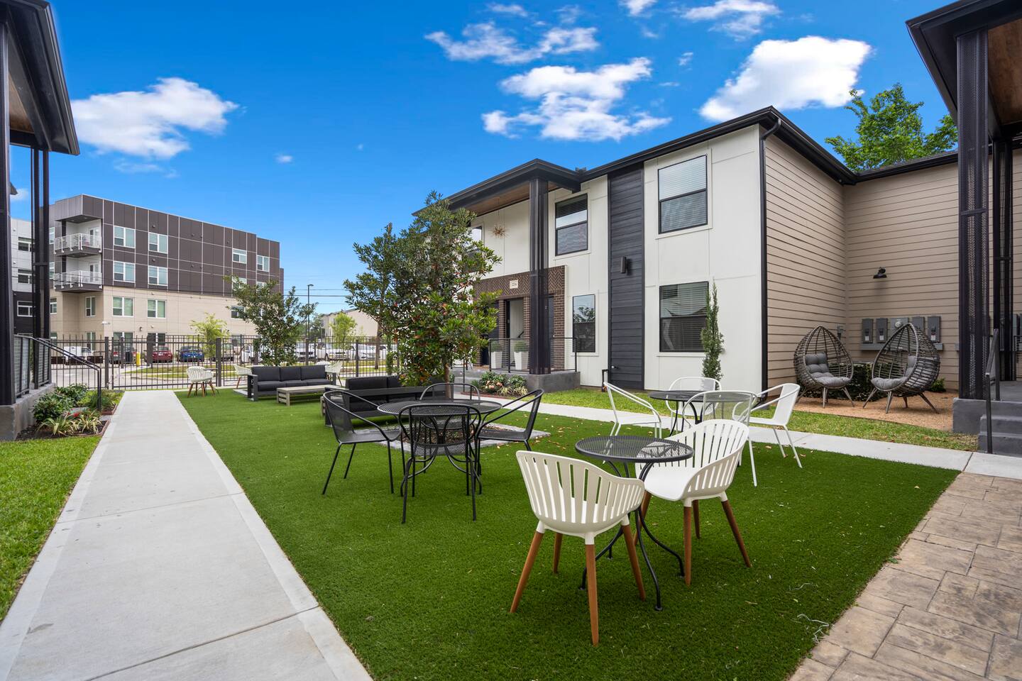 Welcome to The Barbee! Perfect for couples or small groups, this 2-bed/1-bath unit a contemporary living space with stunning artwork and a chef’s kitchen. Relax in our cozy courtyard with tear-drop chairs and couches, or explore the 16 modern-inspired boutique units, accommodating up to 60 guests. Located minutes from the TX Medical Center, stadiums, restaurants, and the Museum District. Enjoy peace of mind with 24/7 outdoor video surveillance, ensuring your safety and comfort during your stay.