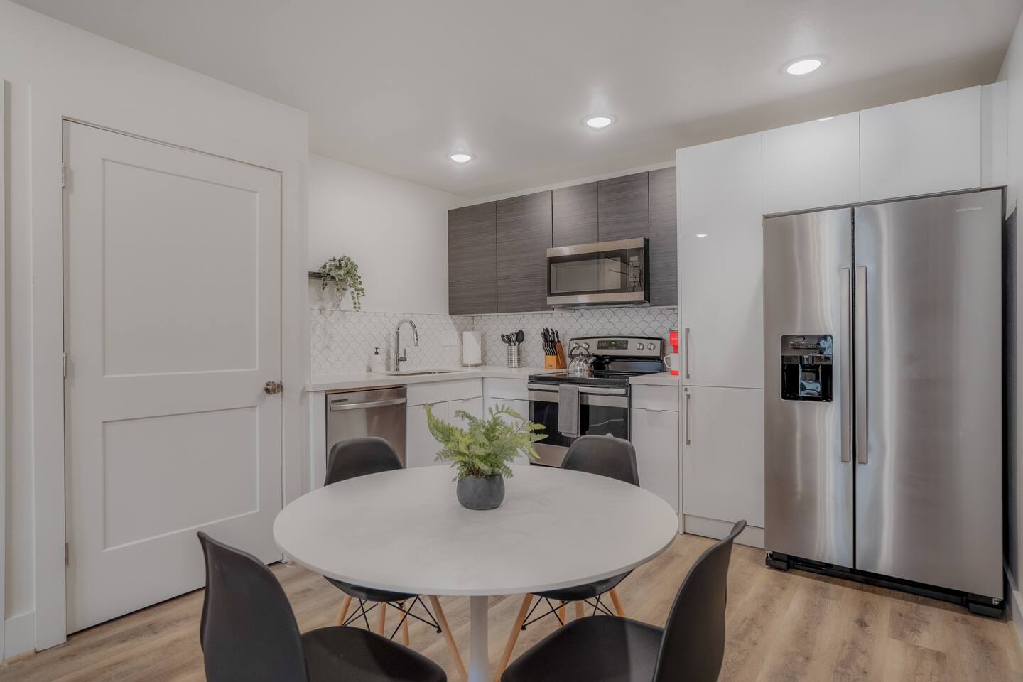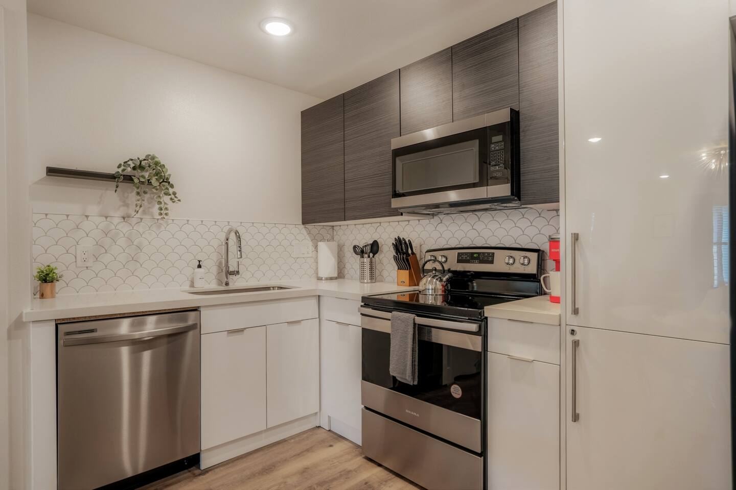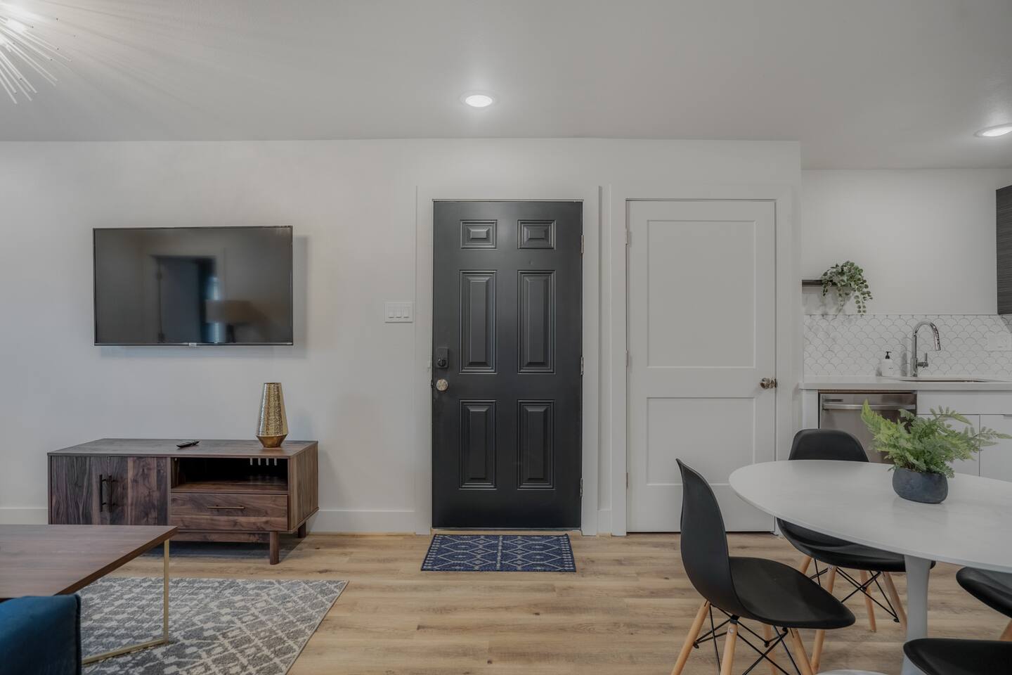 This fully renovated Marilyn unit is on the upper level, includes 2 bedrooms / 2 bath, and offers contemporary artwork, 2 comfortable queen beds, and a full chef’s kitchen. For those who prefer the outdoors, make your way to our plush courtyard for a conversation on our tear drop chairs or restful couches. Free street parking is available all around the property. As a note, this is ONE unit of 15 uniquely designed units at our property. Have more than 4 in your party? We can accommodate up to 60 guests. Our office is onsite and available Monday thru Friday. Ask us about early check ins!