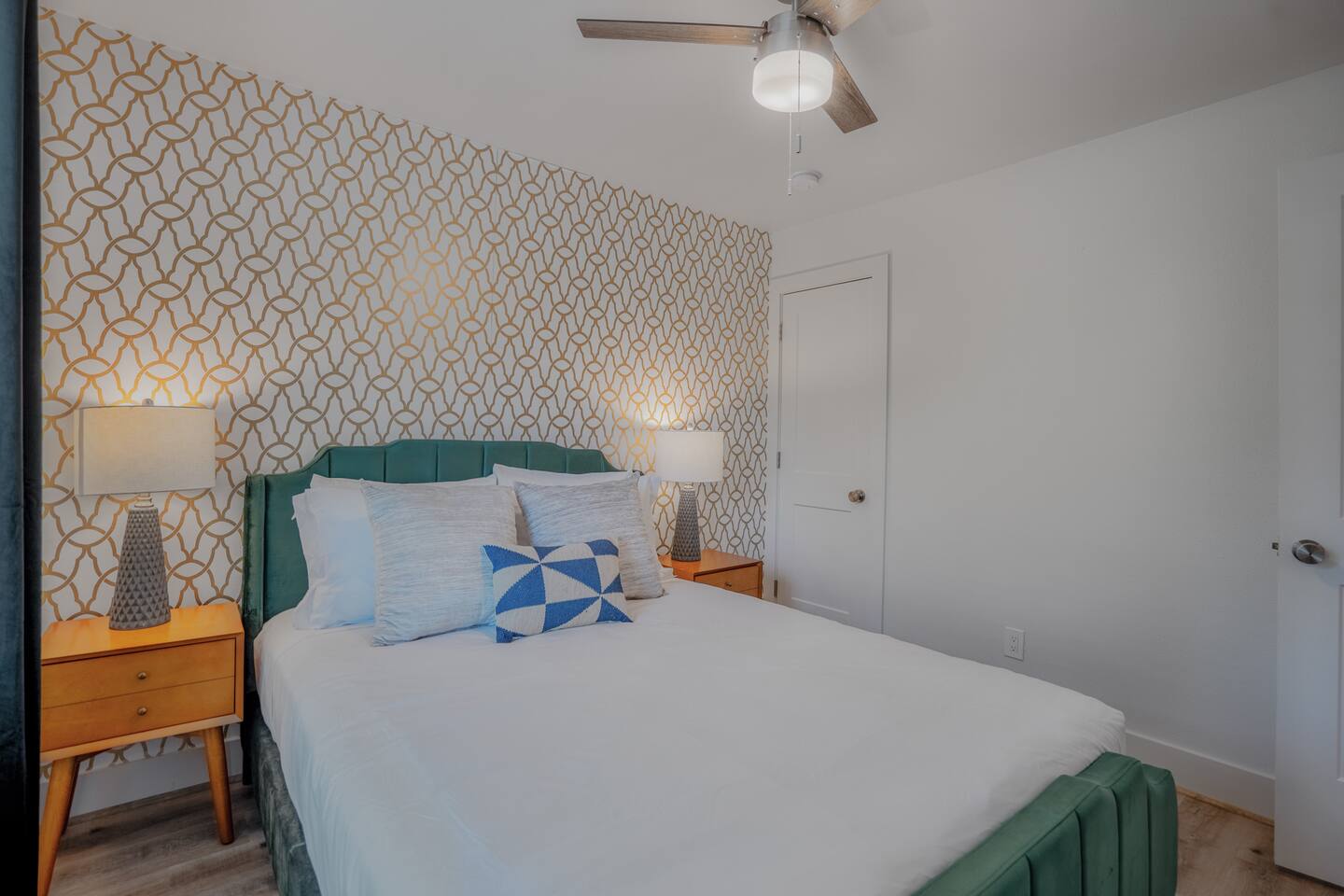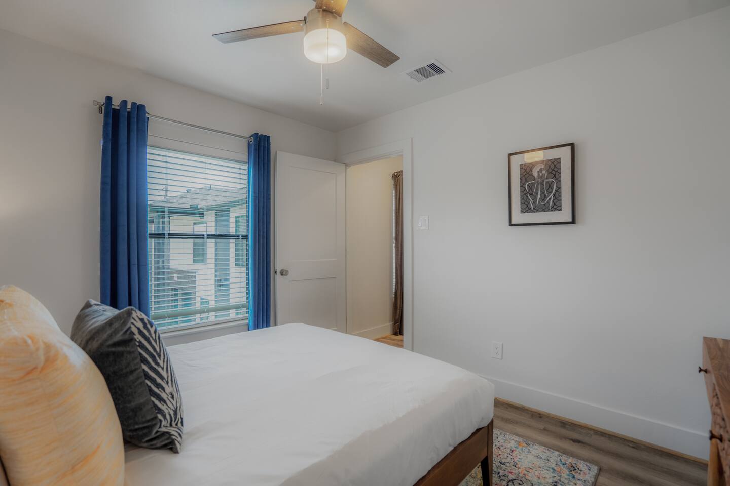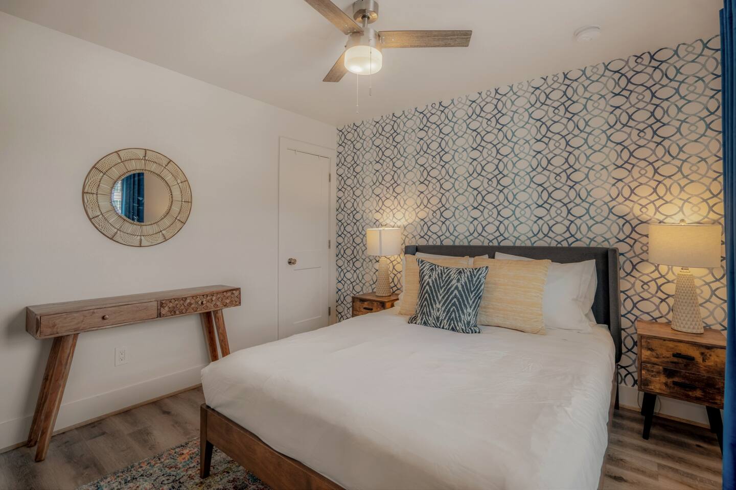 Welcome to The Barbee! Perfect for couples or small groups, this 2-bed/2-bath unit a contemporary living space with stunning artwork and a chef’s kitchen. Relax in our cozy courtyard with tear-drop chairs and couches, or explore the 16 modern-inspired boutique units, accommodating up to 60 guests. Located minutes from the TX Medical Center, stadiums, restaurants, and the Museum District. Enjoy peace of mind with 24/7 outdoor video surveillance, ensuring your safety and comfort during your stay.