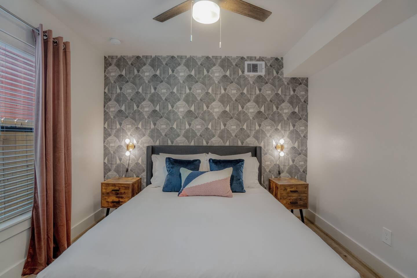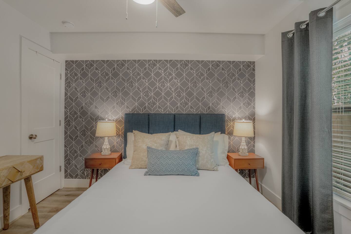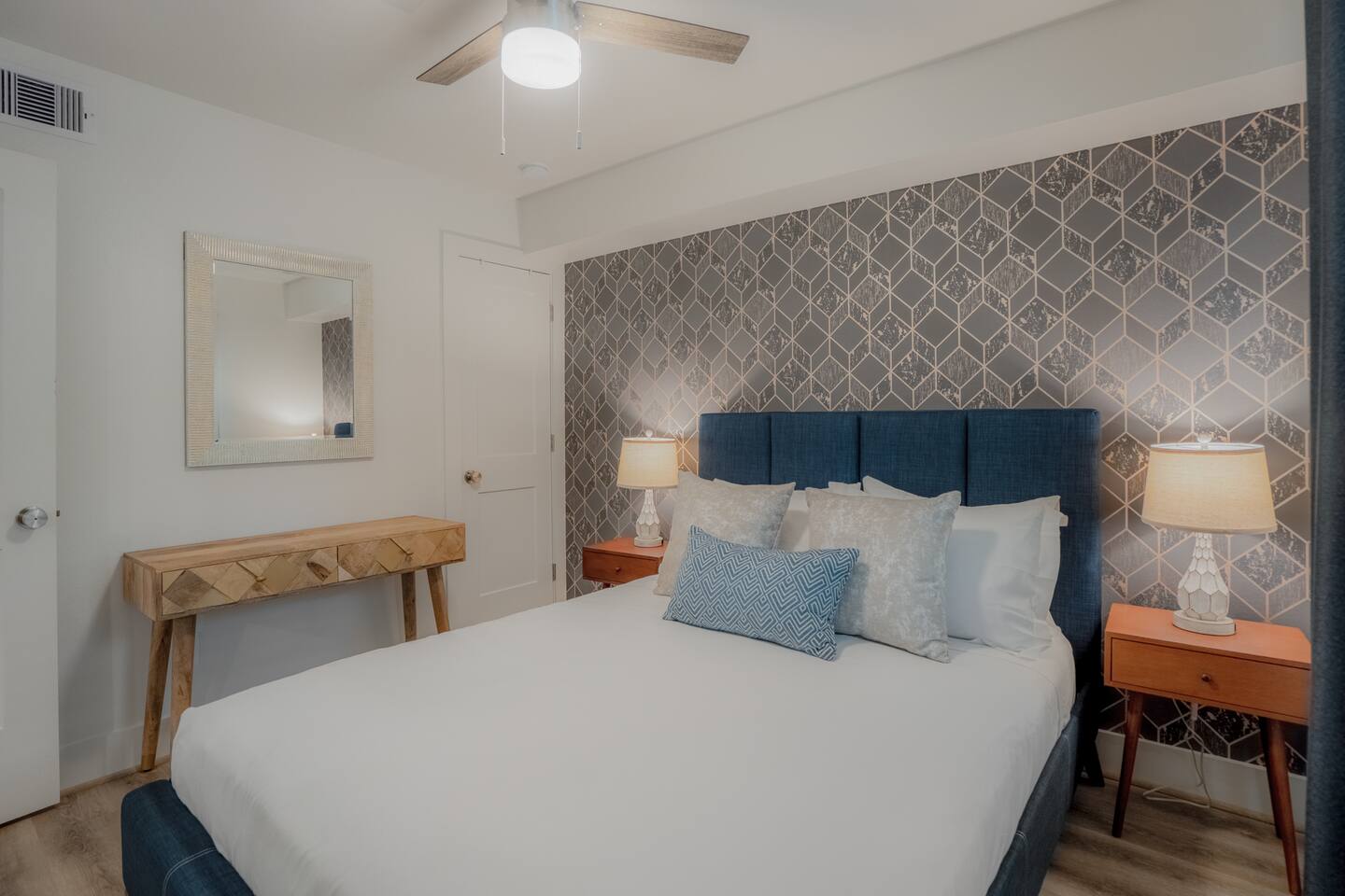 This fully renovated Dean unit rests on the lower level, includes 2 bedrooms / 2 bath, and offers contemporary artwork, 2 comfortable queen beds, and a full chef’s kitchen. For those who prefer the outdoors, make your way to our plush courtyard for a conversation on our tear drop chairs or restful couches. Free street parking is available all around the property. As a note, this is ONE unit of 15 uniquely designed units at our property. Have more than 4 in your party? We can accommodate up to 60 guests. Our office is onsite and available Monday thru Friday. Ask us about early check ins!