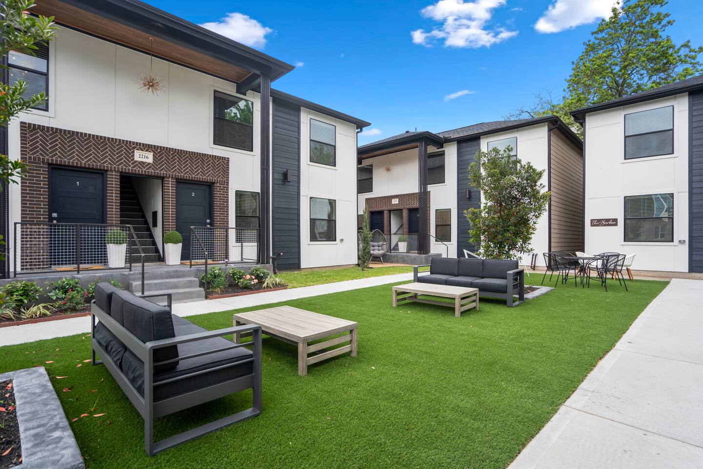 Welcome to The Barbee! Perfect for business, families or gathering of friends, this listing includes 4 modern inspired units that sleeps up to 16 guests. Each unit includes 2 bedrooms and has either 1 or 2 bathrooms. Relax in our courtyard on either our tear drop chairs or couches. The entire property features 15 modern boutique units and can sleep up to 60 guests. Minutes from TX Medical Center, stadiums, restaurants, and the Museum District. 24/7 outdoor video surveillance to feel 100% safe.