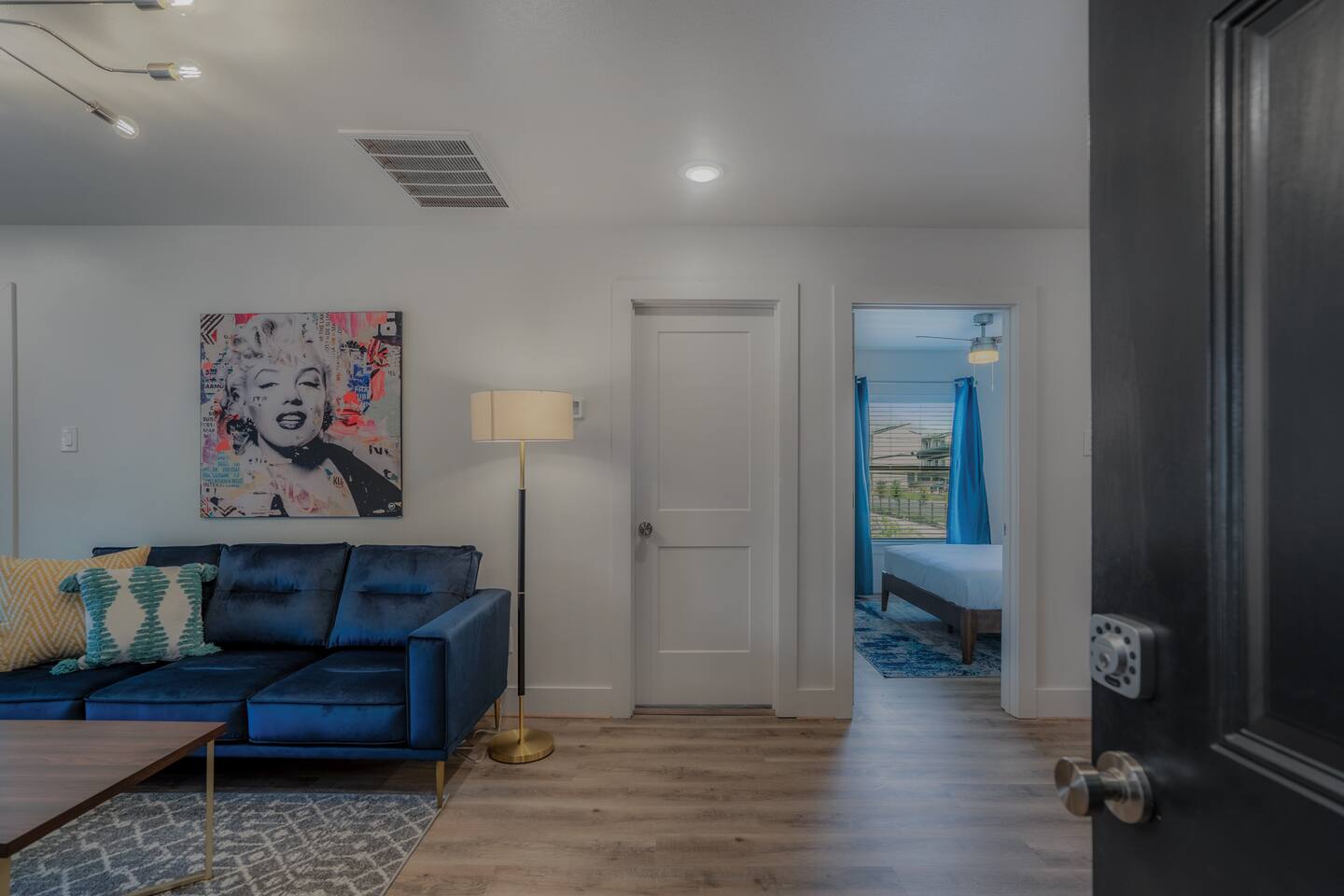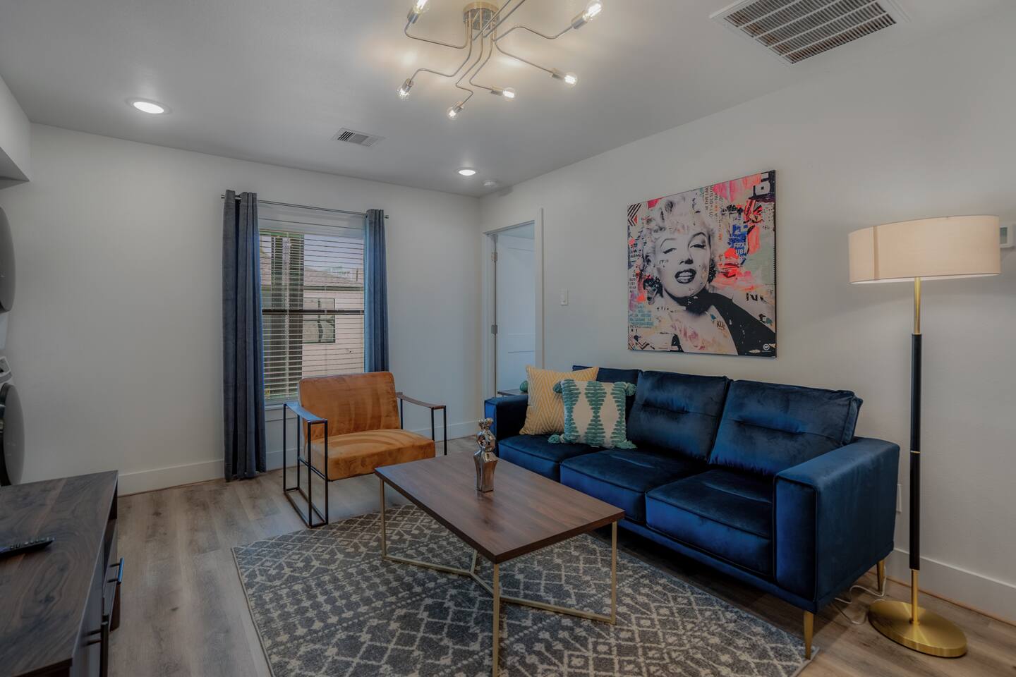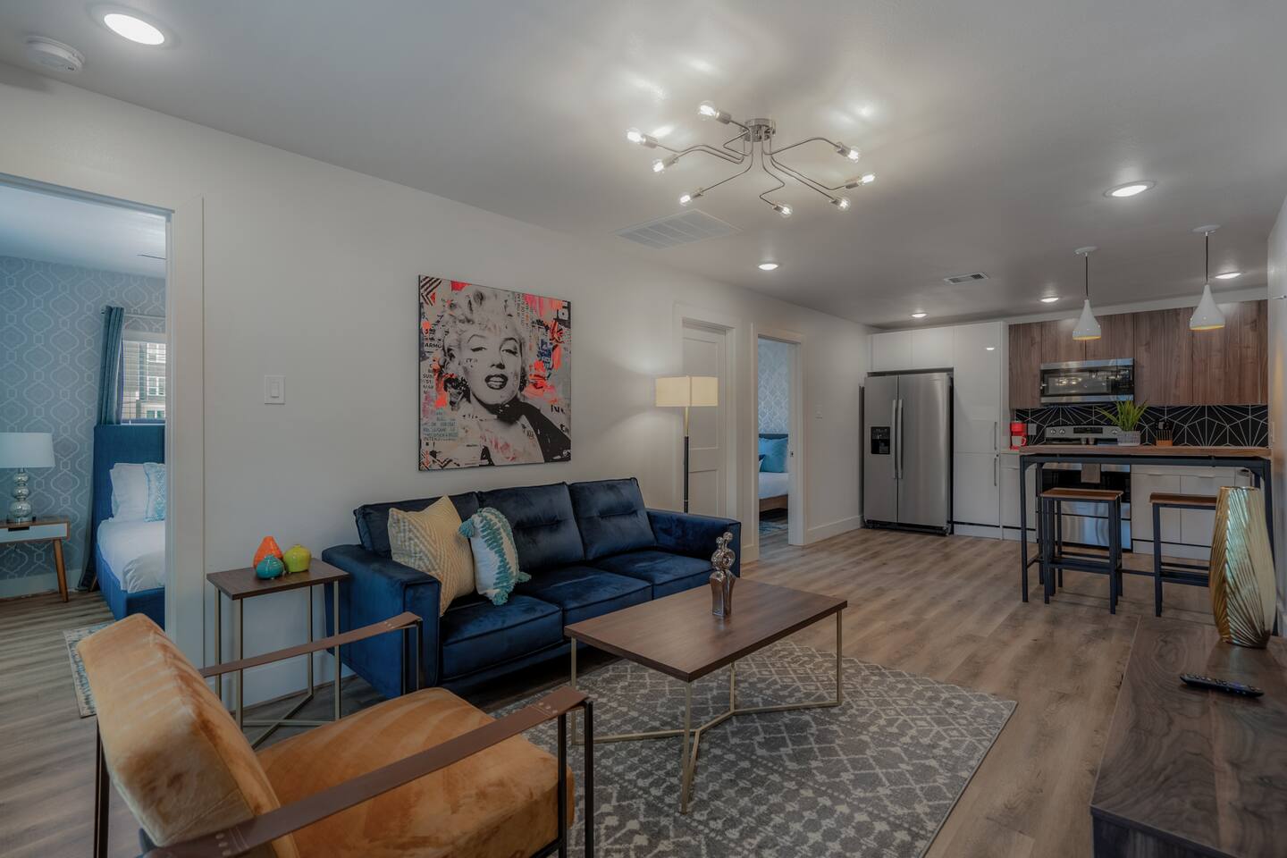 This fully renovated Marilyn unit is on the upper level, includes 2 bedrooms / 1 bath, and offers contemporary artwork, 2 comfortable queen beds, and a full chef’s kitchen. For those who prefer the outdoors, make your way to our plush courtyard for a conversation on our tear drop chairs or restful couches. Free street parking is available all around the property. As a note, this is ONE unit of 15 uniquely designed units at our property. Have more than 4 in your party? We can accommodate up to 60 guests. Our office is onsite and available Monday thru Friday. Ask us about early check ins!