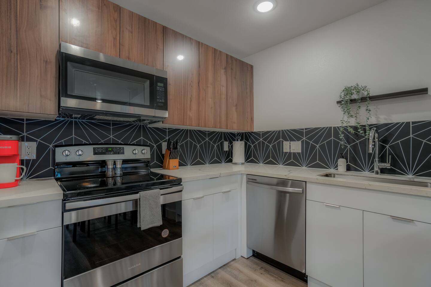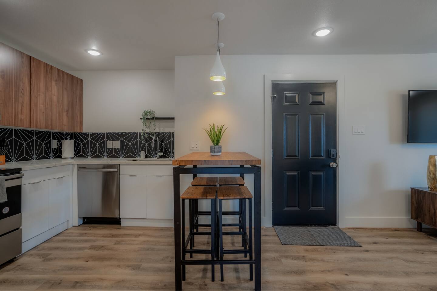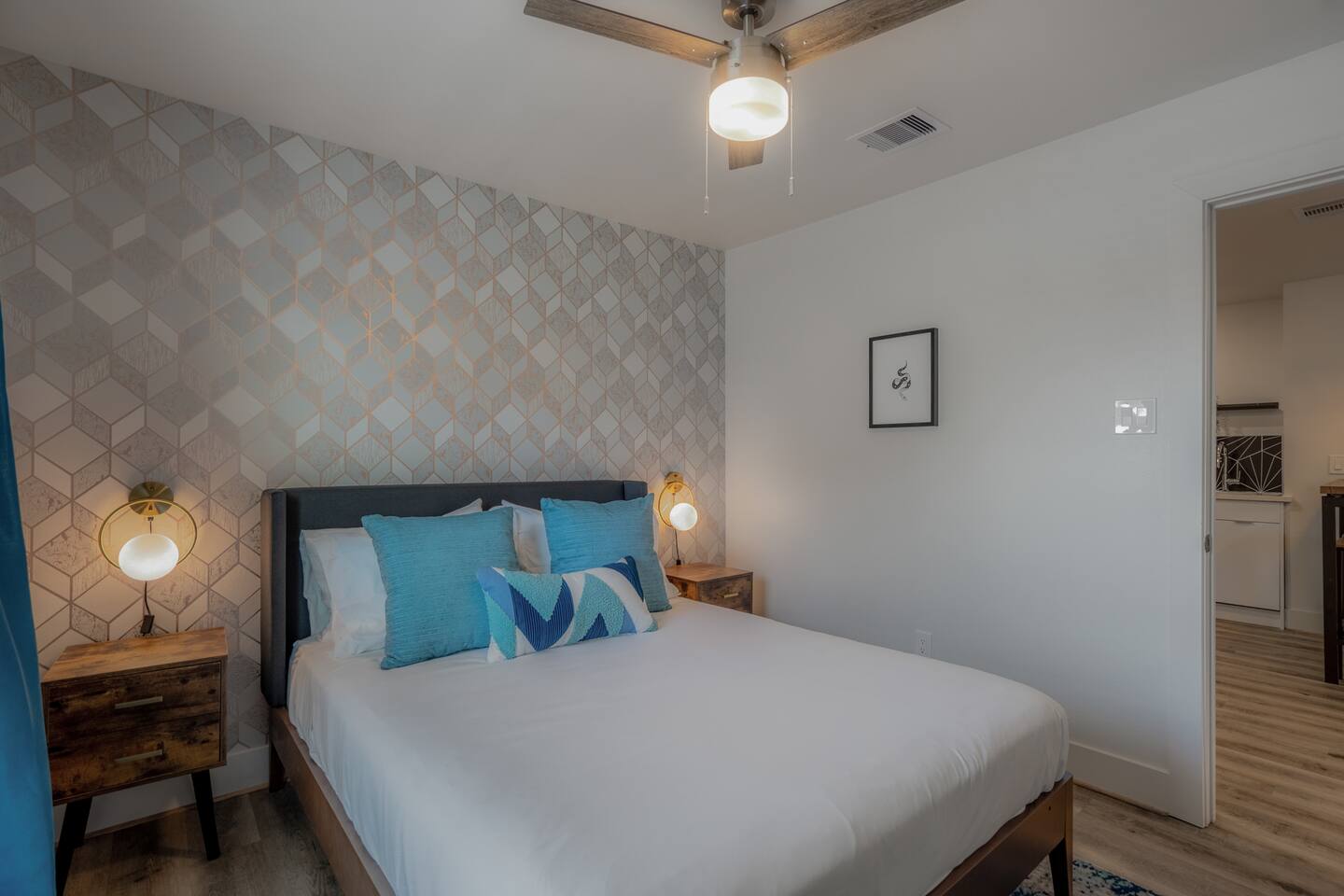 This fully renovated Marilyn unit is on the upper level, includes 2 bedrooms / 1 bath, and offers contemporary artwork, 2 comfortable queen beds, and a full chef’s kitchen. For those who prefer the outdoors, make your way to our plush courtyard for a conversation on our tear drop chairs or restful couches. Free street parking is available all around the property. As a note, this is ONE unit of 15 uniquely designed units at our property. Have more than 4 in your party? We can accommodate up to 60 guests. Our office is onsite and available Monday thru Friday. Ask us about early check ins!
