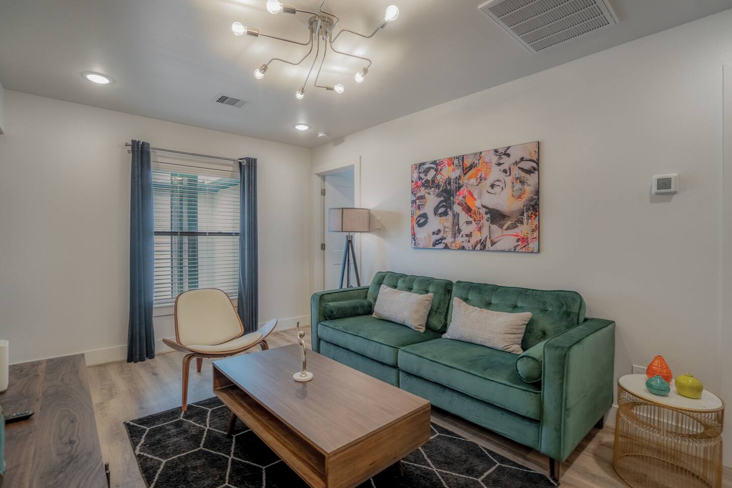 Modern 2-bedroom, 2-bath retreat in Houston featuring fast free Wi-Fi and a comfortable, stylish interior, perfect for short or extended stays. Relax in the cozy shared courtyard, ideal for morning coffee or evening downtime. The property includes 24/7 outdoor video surveillance for added peace of mind. Conveniently located near universities, dining, and downtown attractions, making it a great base for work or exploring the city.Make some memories at this unique and cozy place.