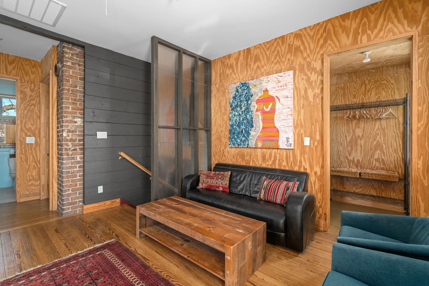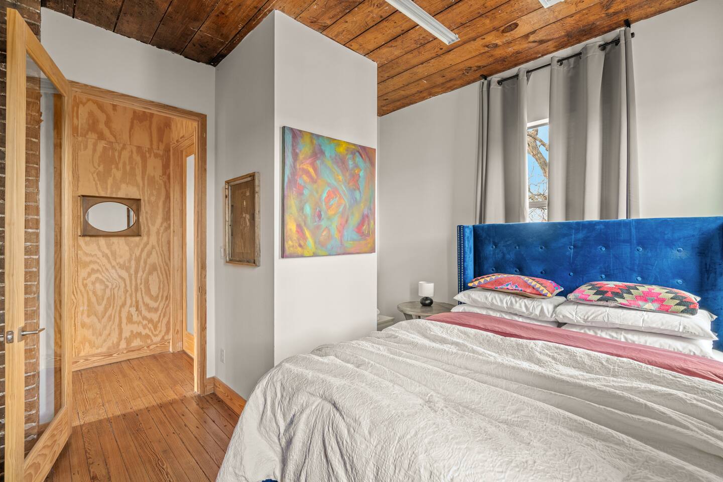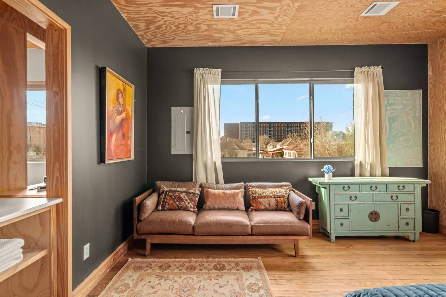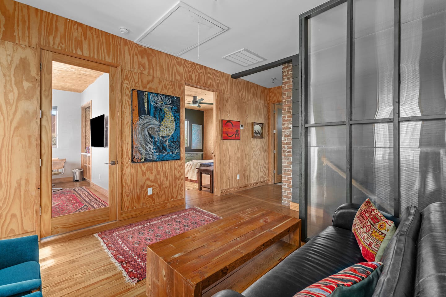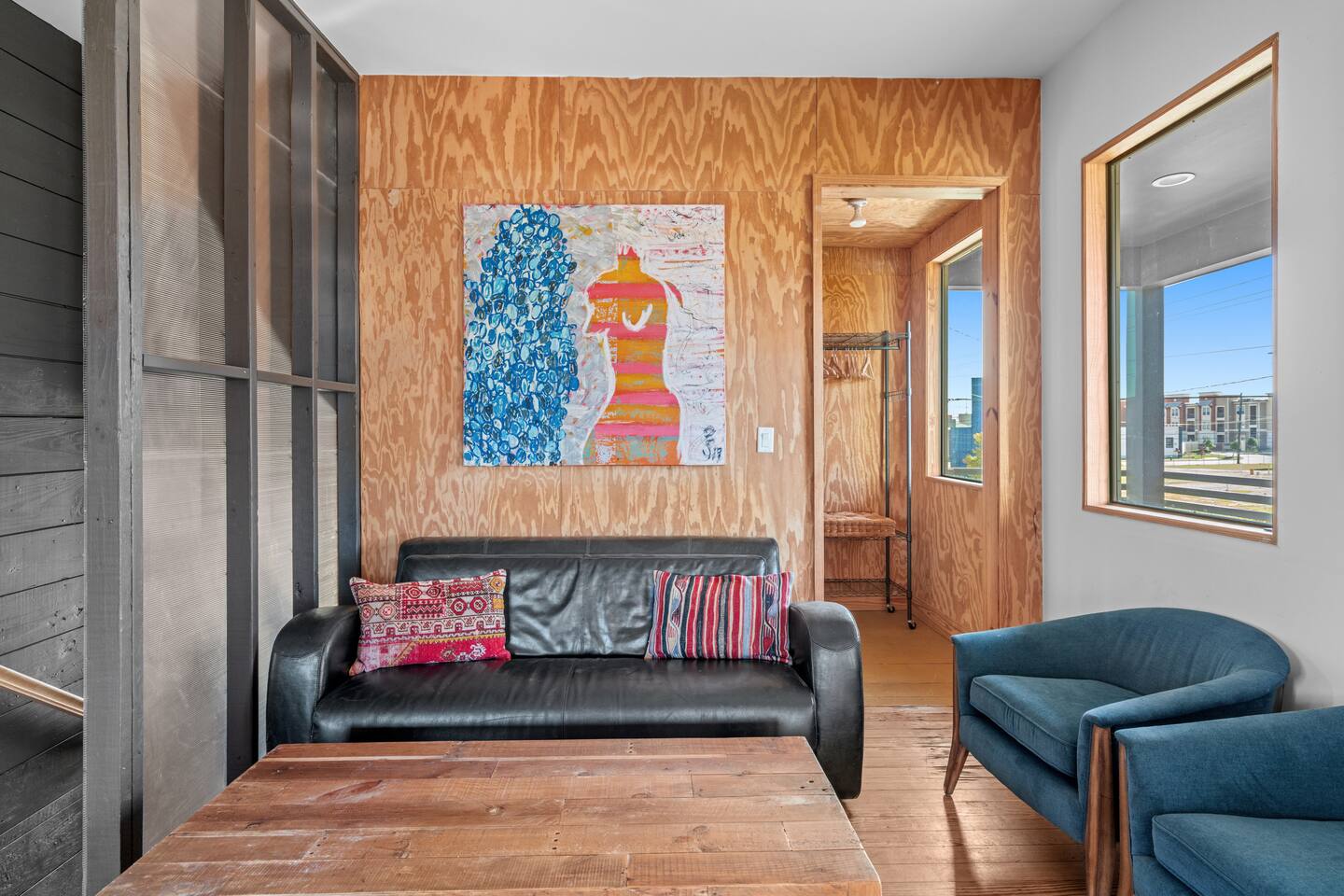 Stay in a stylish gallery-inspired loft featuring warm wood tones and curated design. The space offers 2 bedrooms with a king and queen bed, 1 bathroom, and thoughtful amenities including a mini fridge with freezer, microwave, electric heating pot, coffee machine with pods, kettle, tea, toaster, and hair dryer. On-site parking included.