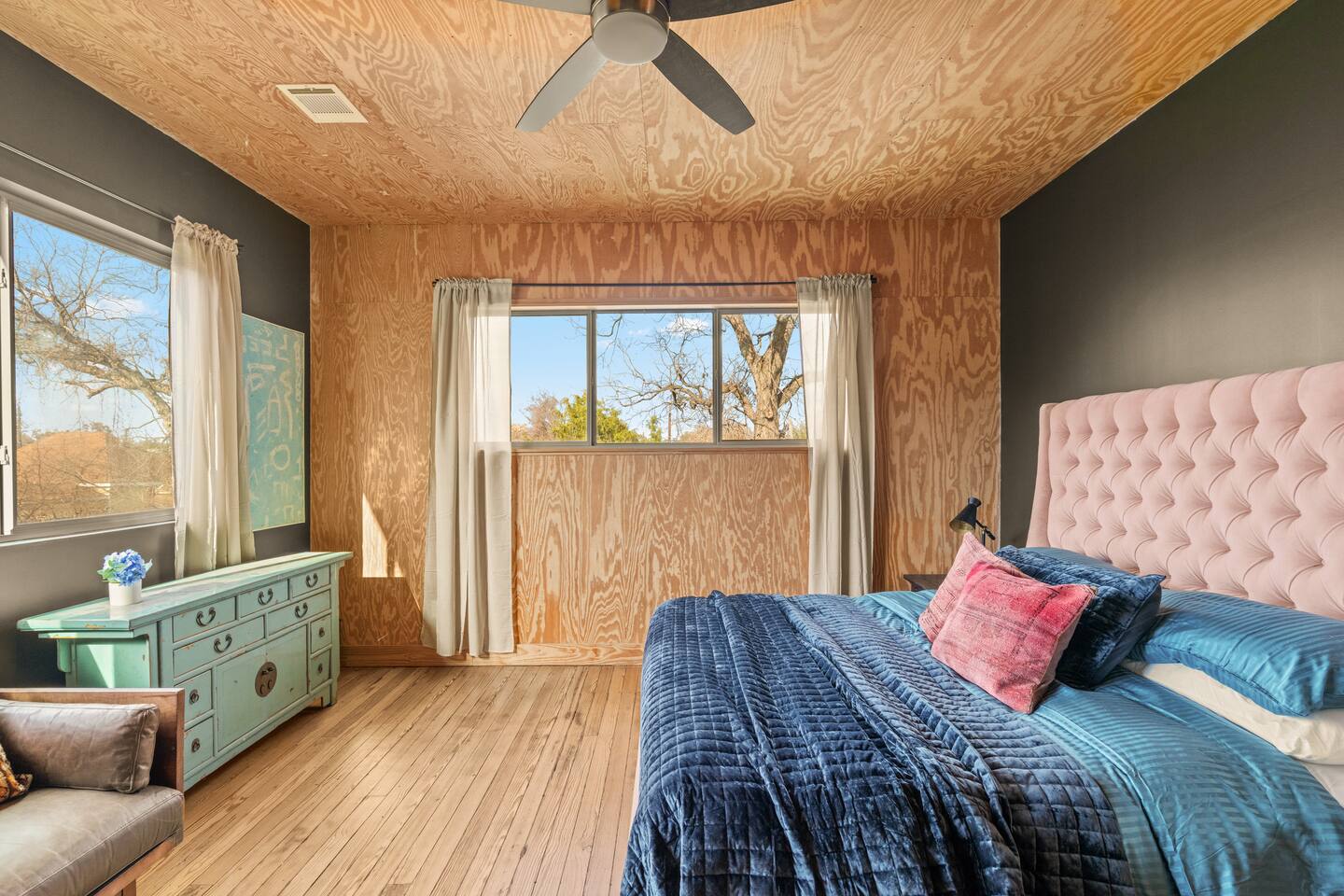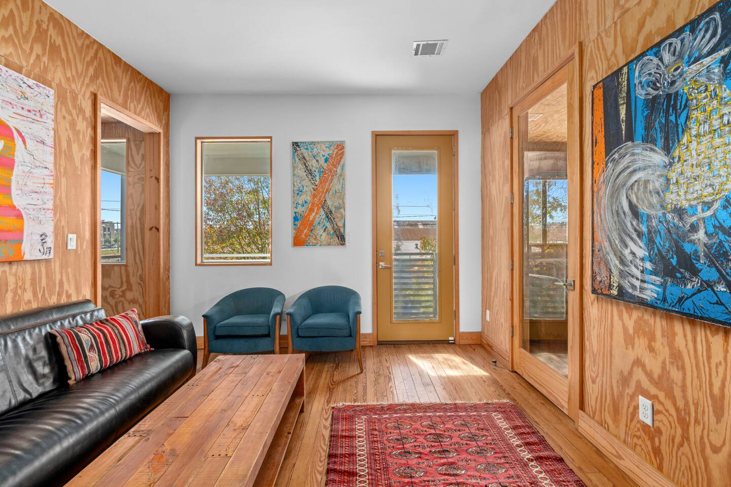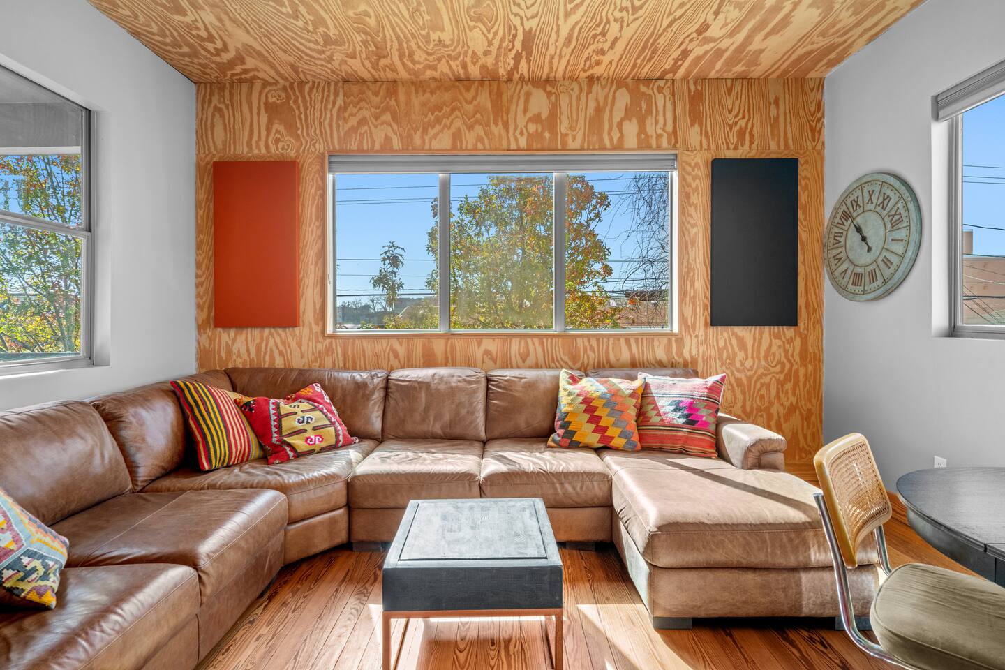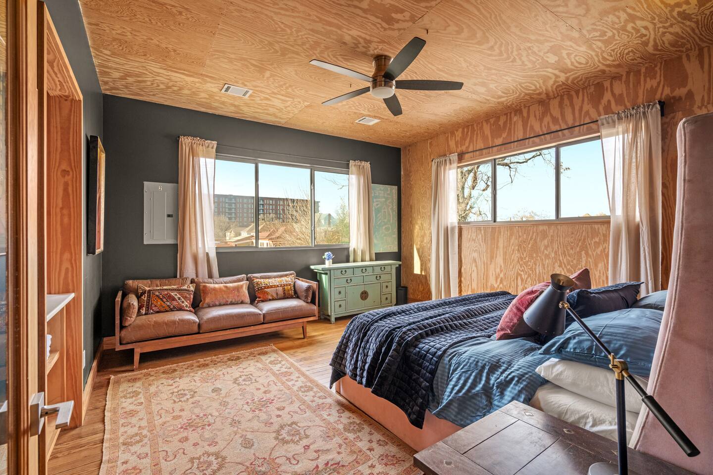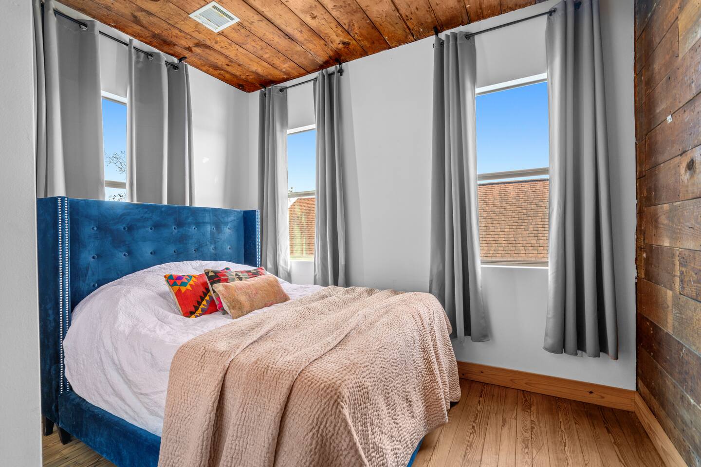 Stay in a stylish gallery-inspired loft featuring warm wood tones and curated design. The space offers 2 bedrooms with a king and queen bed, 1 bathroom, and thoughtful amenities including a mini fridge with freezer, microwave, electric heating pot, coffee machine with pods, kettle, tea, toaster, and hair dryer. On-site parking included.